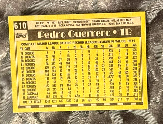 1980s Pedro Guerrero Topps Baseball Card - St. Louis Cardinals Outfielder