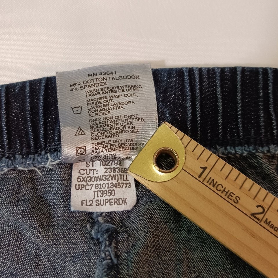 These blue jeans are made from 97% cotton and 3% spandex, ensuring that they will last for many wears to come. They come in a size 5X with a waist size of 50 inches and an inseam of 30.5 inches. Don't miss out on the chance to add these versatile pants to your collection.