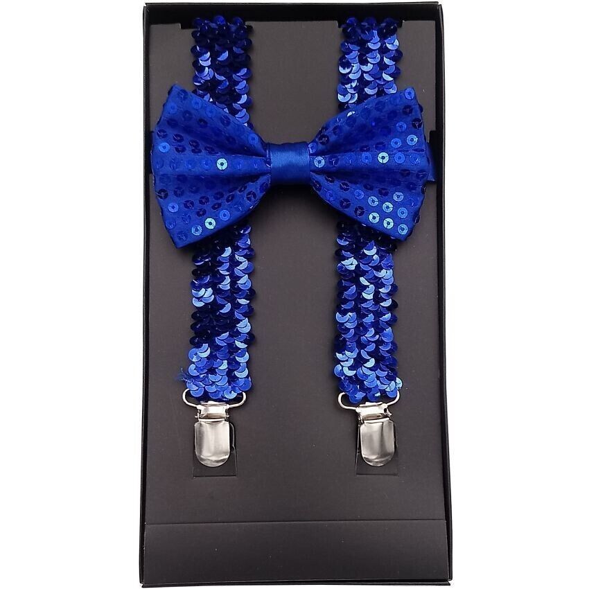 Men AB Elastic Band Blue Sequin Suspender With Maching Polyester Bowtie