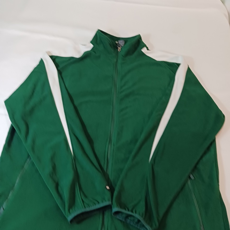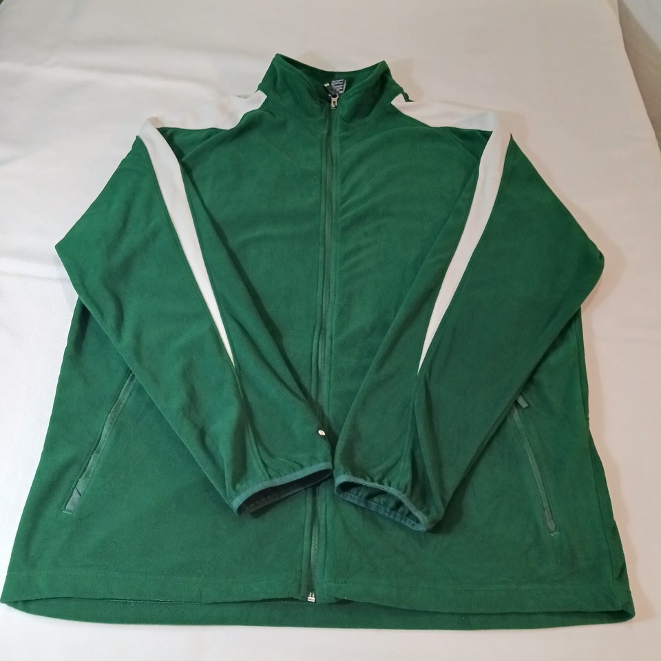 Holloway Men's Green & White Fleece Full Zip Pockets Jacket Long Sleeve Size XL