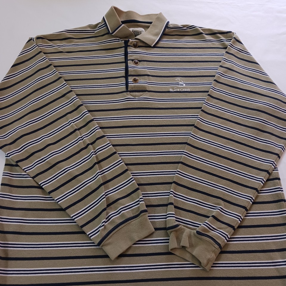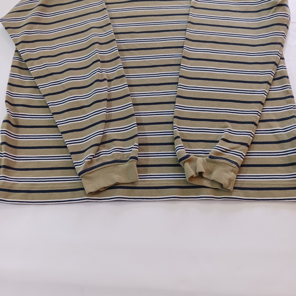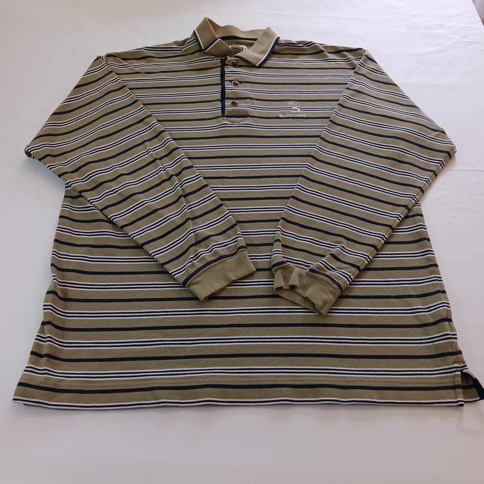 Cutter & Buck 3-Button Men's Brown Cotton Stripes Polo Shirt Long Sleeve Size M
