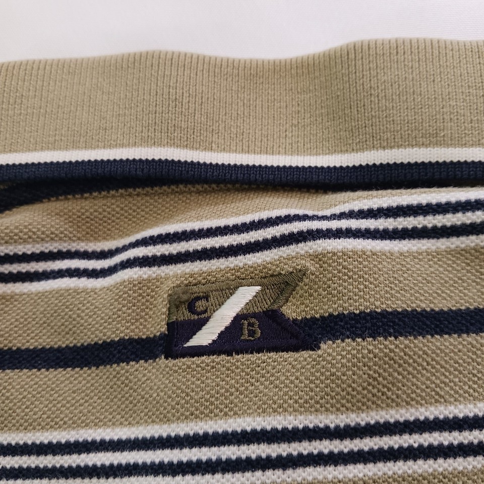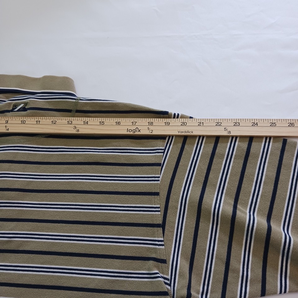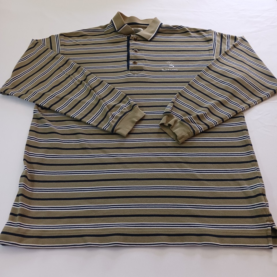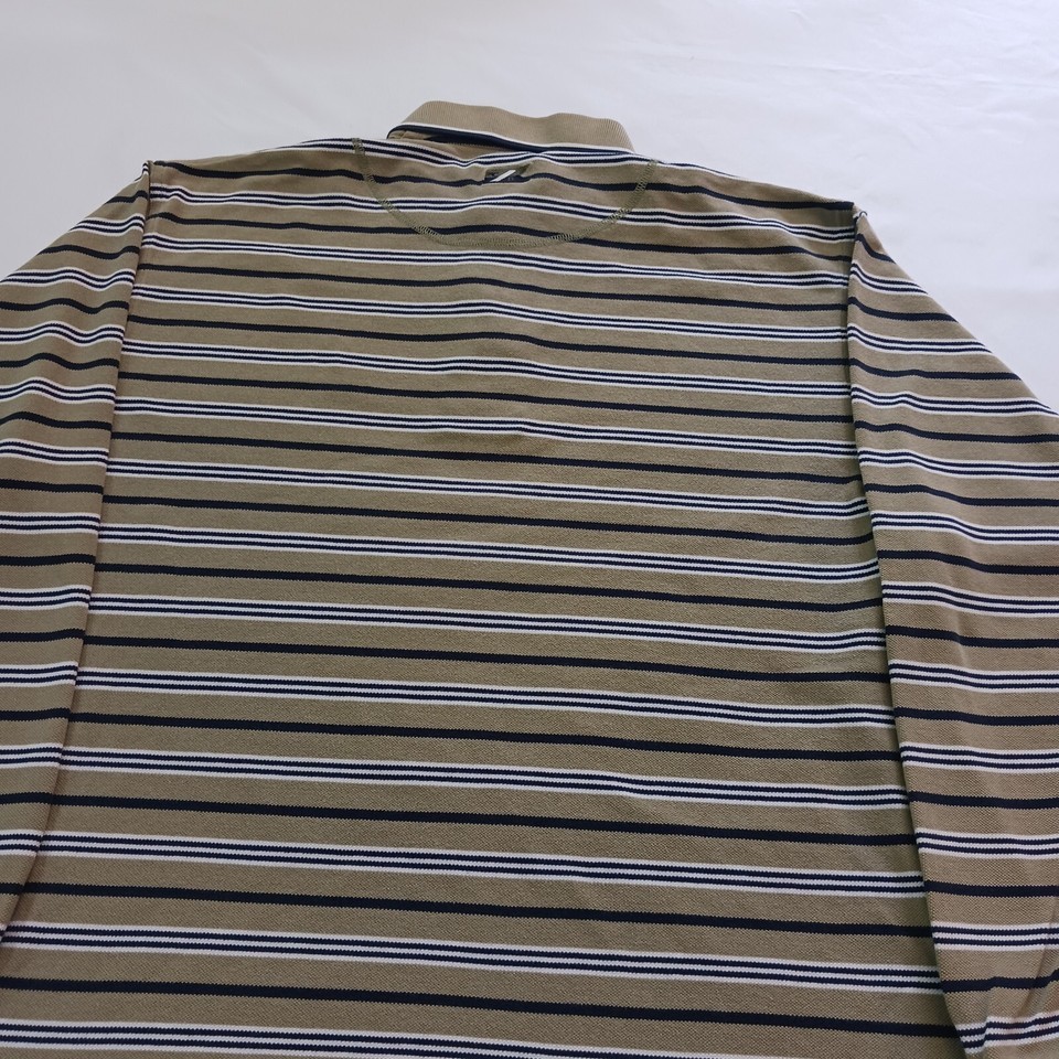 Cutter & Buck 3-Button Men's Brown Cotton Stripes Polo Shirt Long Sleeve Size M