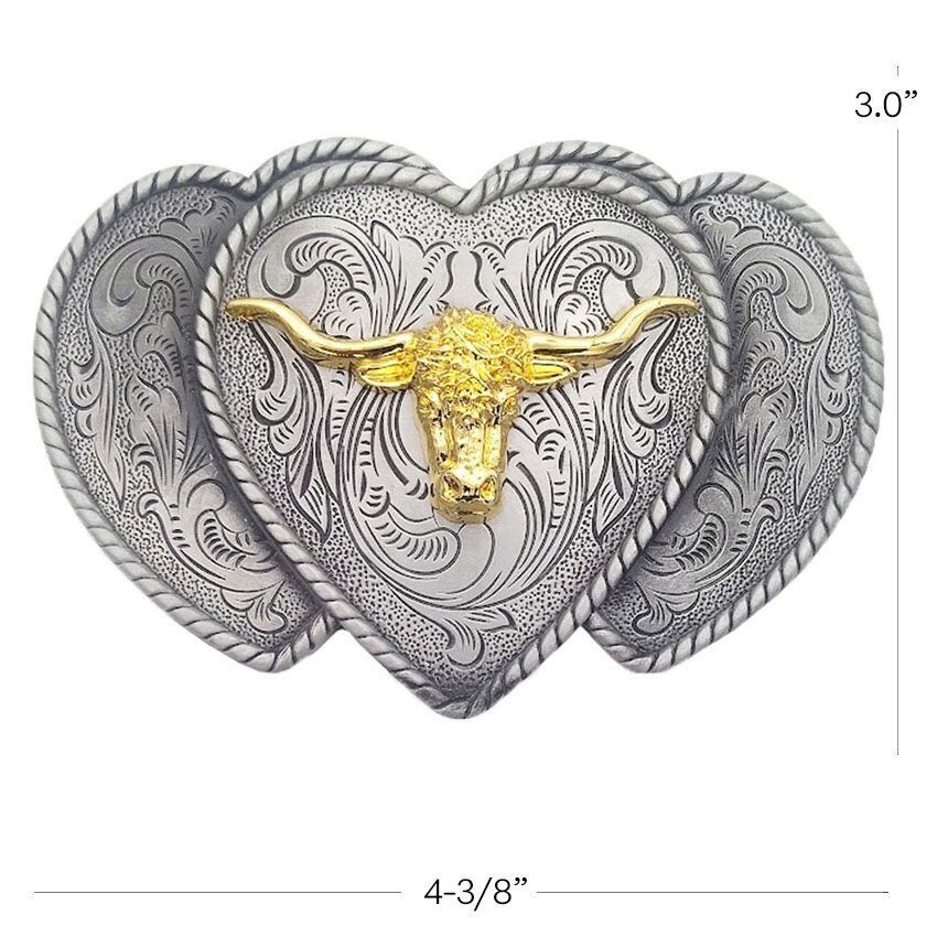 Golden Longhorn Bull Heart-Shaped Design Silver Metal Women's Belt Buckle