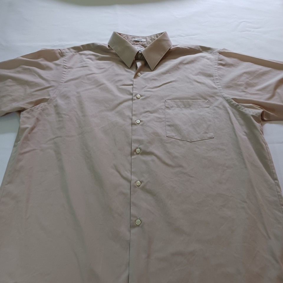 Van Heusen Regular Fit Men's Beige Wrinkle Free Button Up Shirt Size 17
