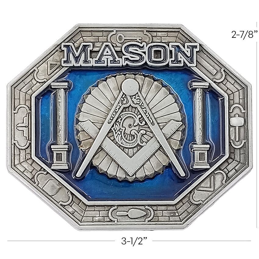 Add a touch of Masonic charm to your outfit with this stylish belt buckle. The buckle features a striking blue and silver design that will complement any outfit. The metal construction ensures that it is durable and long-lasting.