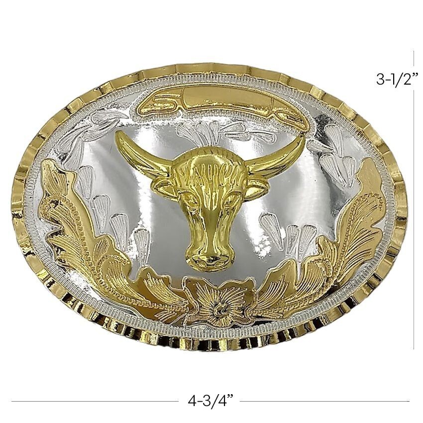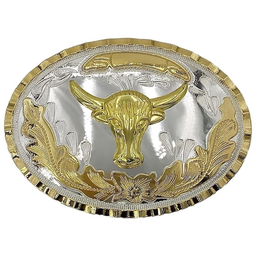 Oversized Golden Bull Head Silver Metal Belt Buckle