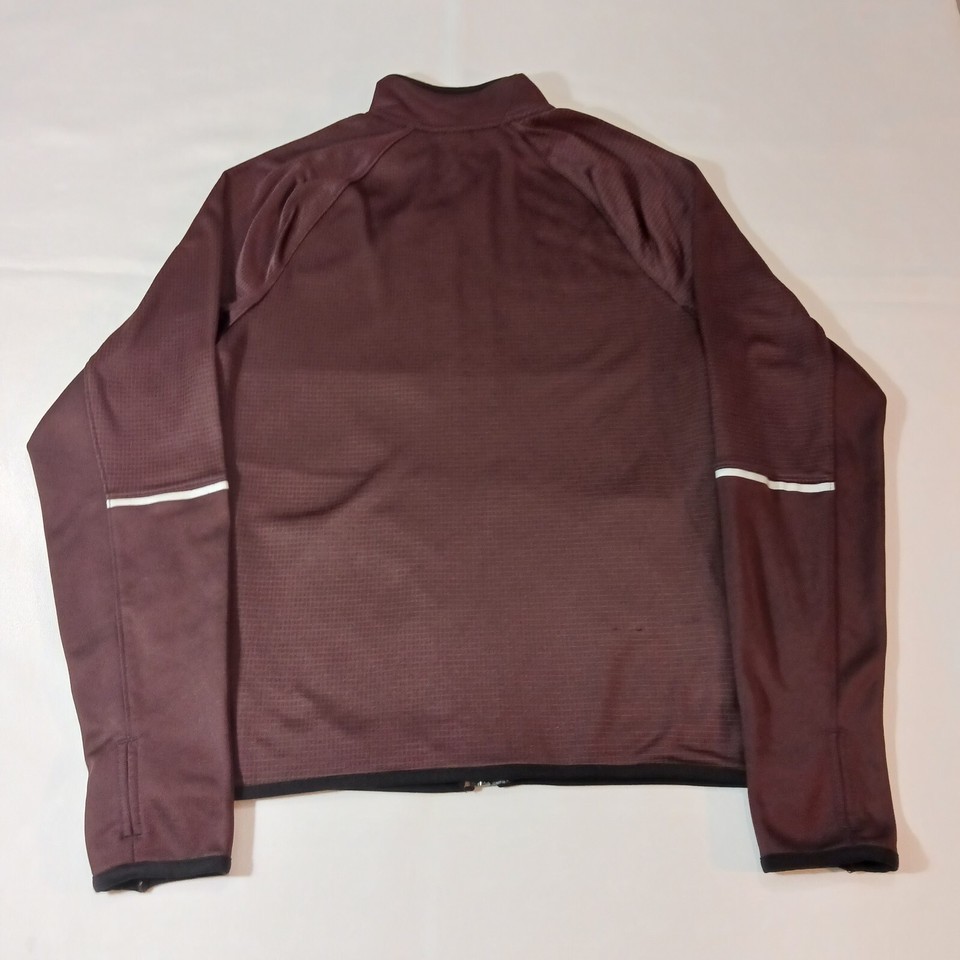 This Old Navy Active Go-Dry jacket is a men's size small in a rich burgundy color. It features a full zip closure, long sleeves, and a regular fit with a chest size of 39 inches. The jacket is made of a cotton blend fleece fabric, making it suitable for activewear in various seasons. Additionally, it has a length of 27.5 inches and includes convenient pockets for storage. Perfect for staying warm and comfortable during outdoor activities or daily wear.