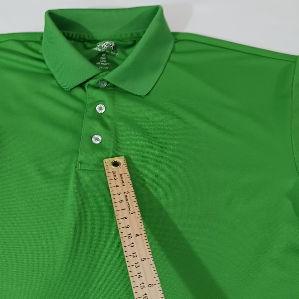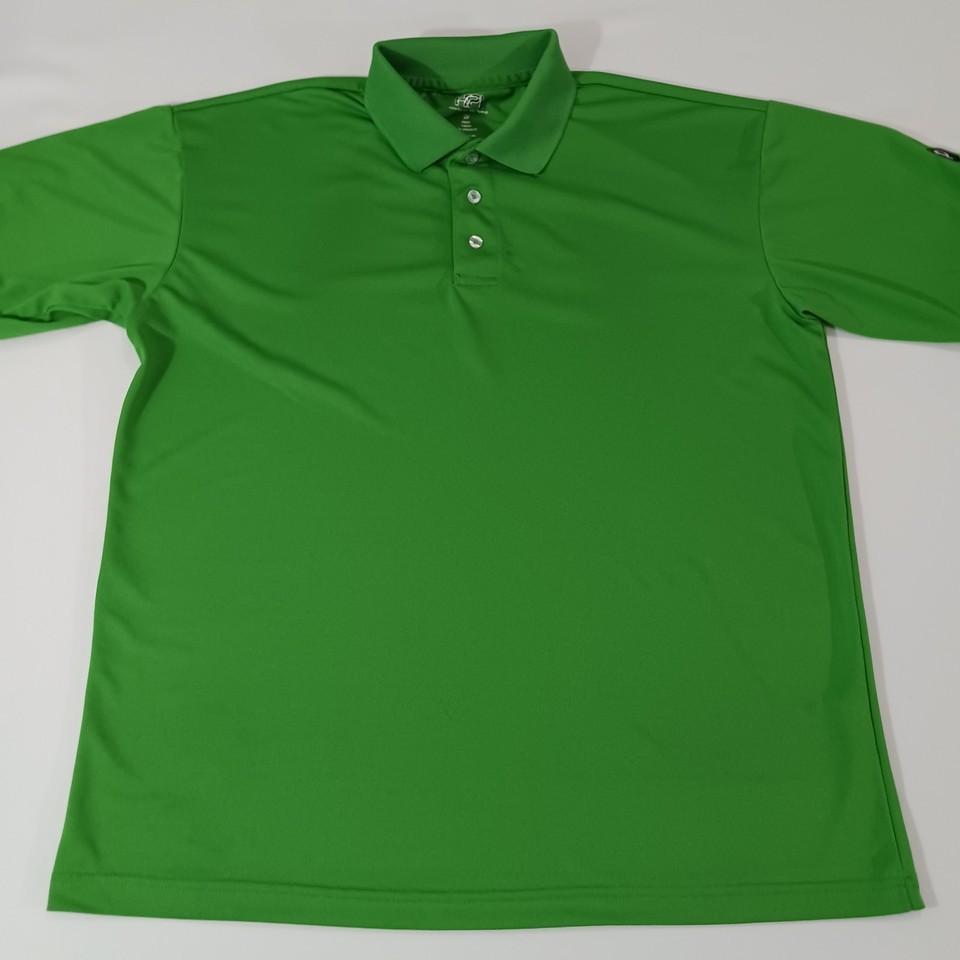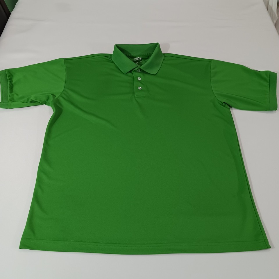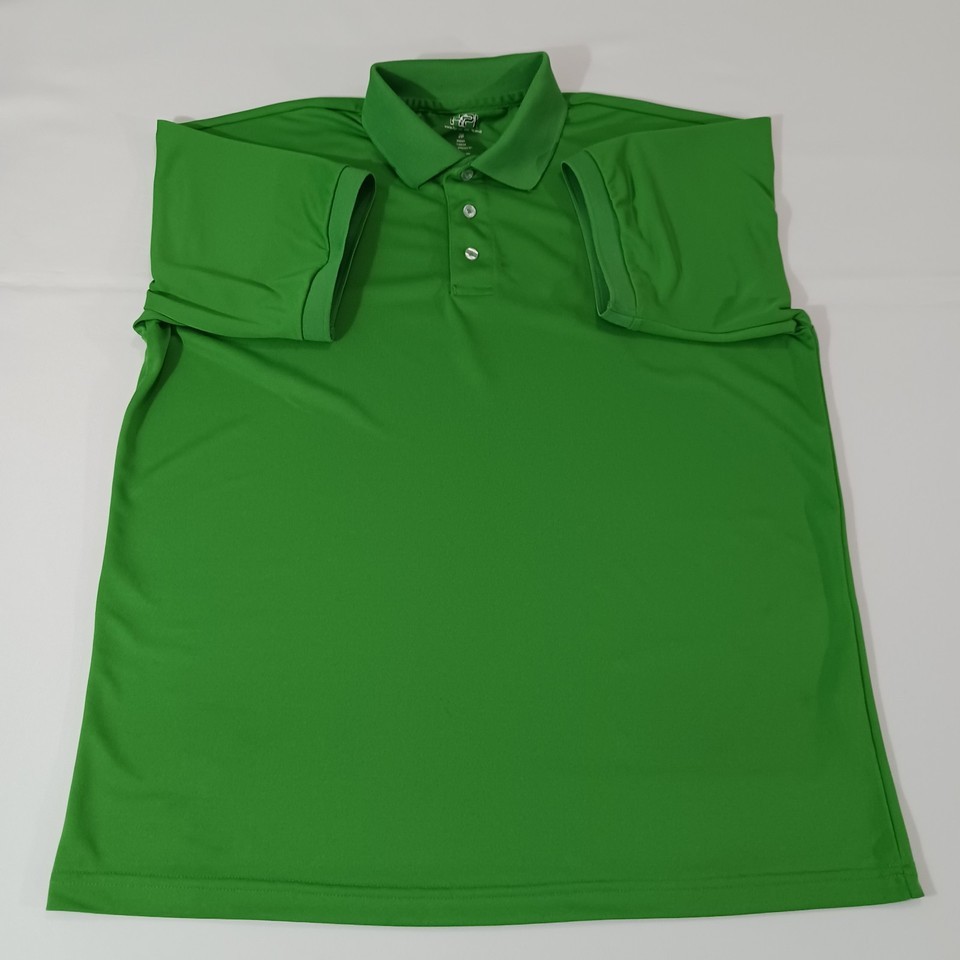 The product is an HPI High Performance Identity Publix polo shirt designed for men in a size medium, featuring short sleeves and a green color. This shirt is intended for work uniform use by employees, specifically in the grocery industry. The design is unisex, making it suitable for both male and female employees.