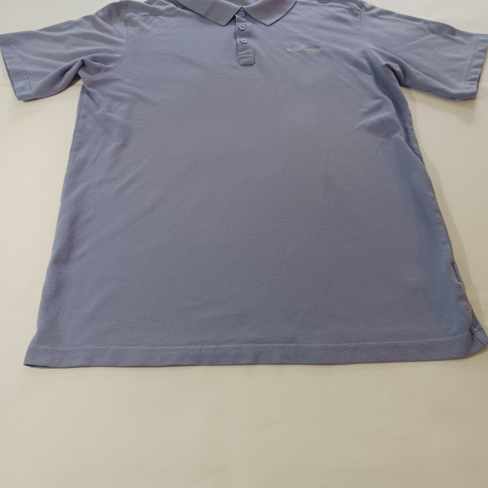 This Columbia men's polo shirt in size L is perfect for any occasion, whether it's for activewear, casual wear, or business wear. The shirt is made of a comfortable cotton/polyester blend and features moisture-wicking technology to keep you cool and dry. The shirt has a spread collar and short sleeves, with a button closure and a solid pattern in a beautiful shade of lavender.