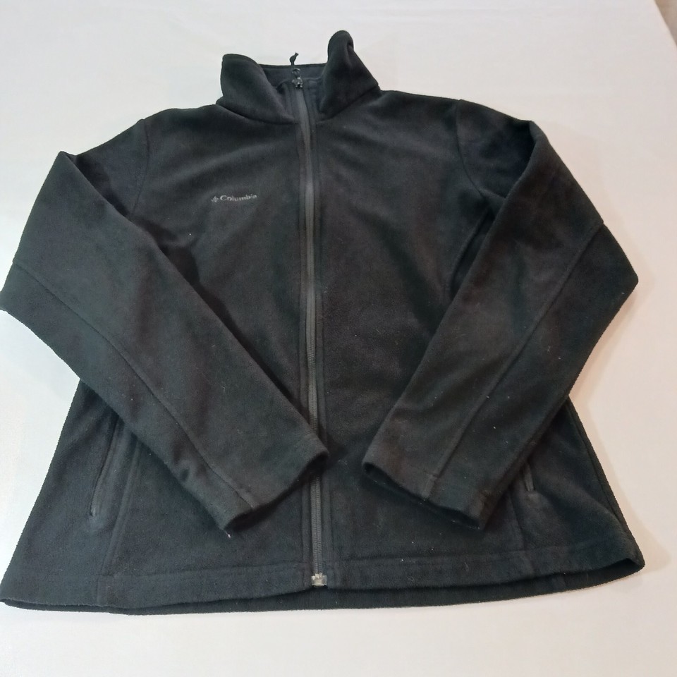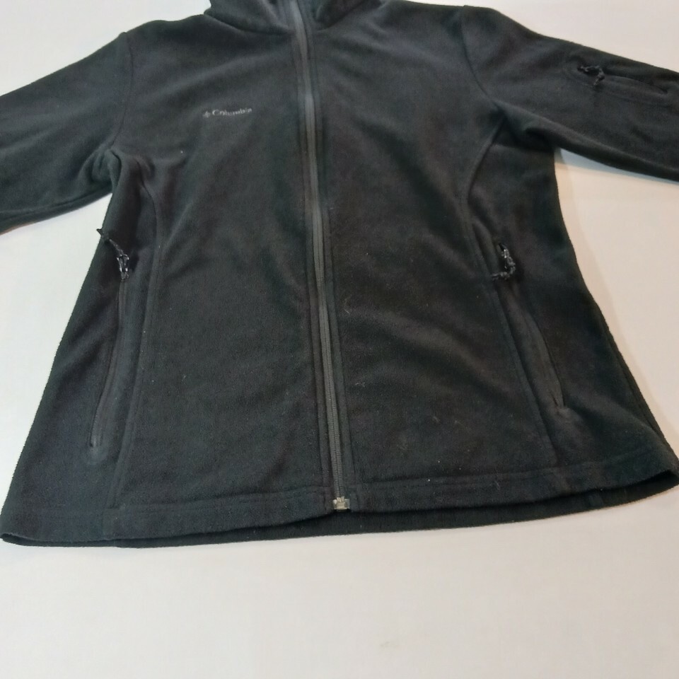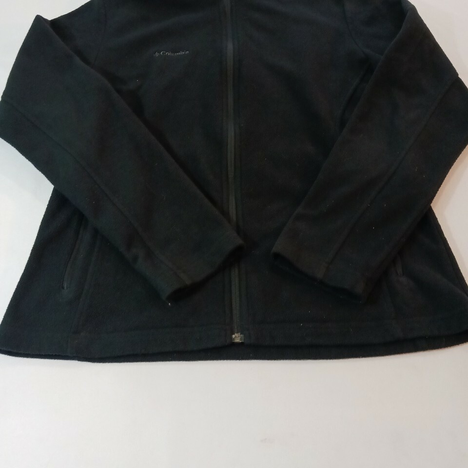 Stay warm and stylish this winter with this black Columbia Sportswear Company RN#69724 Women's Full Zip Fleece Jacket in size M. The jacket features a full zip closure, long sleeves, and mid-length design. It is made of polyester outer shell and lining material, making it comfortable and machine washable. The jacket is perfect for casual occasions and can be worn in fall, winter, or spring.