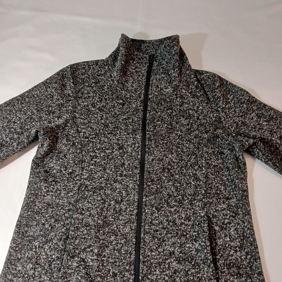 This Faded Glory jacket for women is a stylish and practical addition to any wardrobe. The jacket features a full zipper closure with long sleeves and a length of 27 inches, perfect for layering during colder weather. Made of 100% polyester, the gray jacket has a solid pattern with convenient pockets for storage. The size is Large (12-14) and the brand is Faded Glory, known for their quality and affordable clothing options. Perfect for casual wear, this jacket is a versatile piece that can be worn with a variety of outfits.