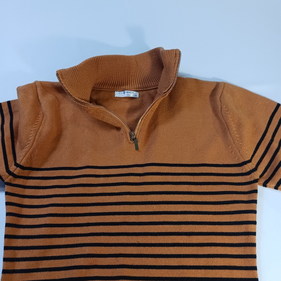 Coofandy Women's Orange & Black Stripes 1/4 Zip Pullover Sweater Size Medium
