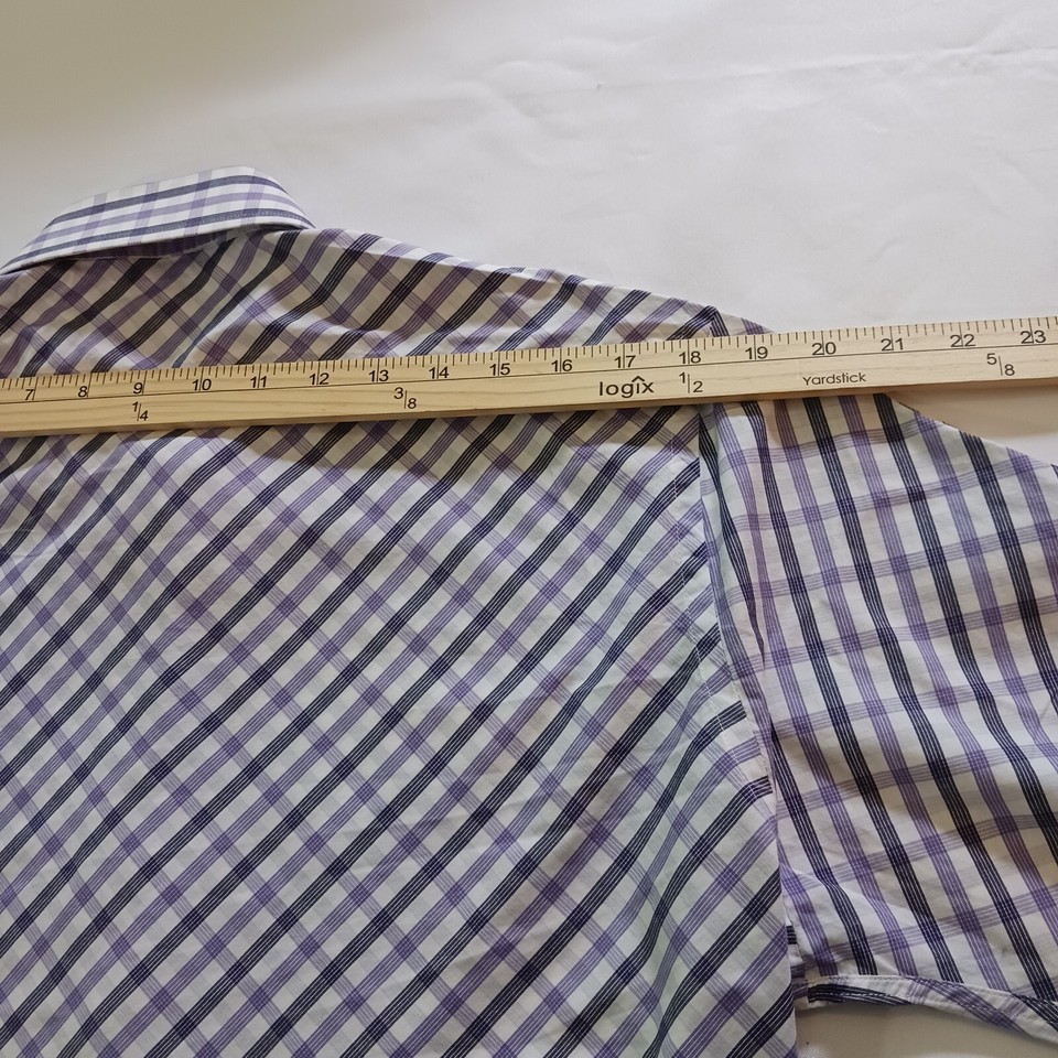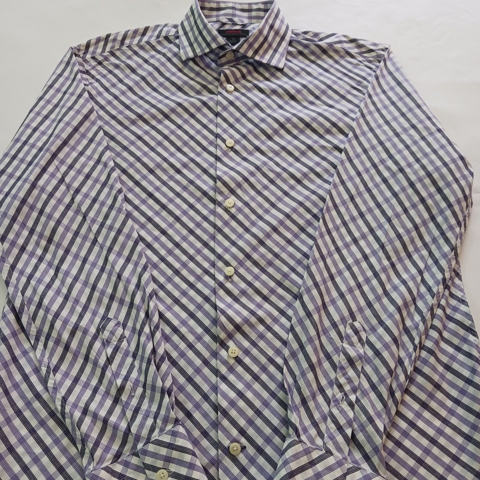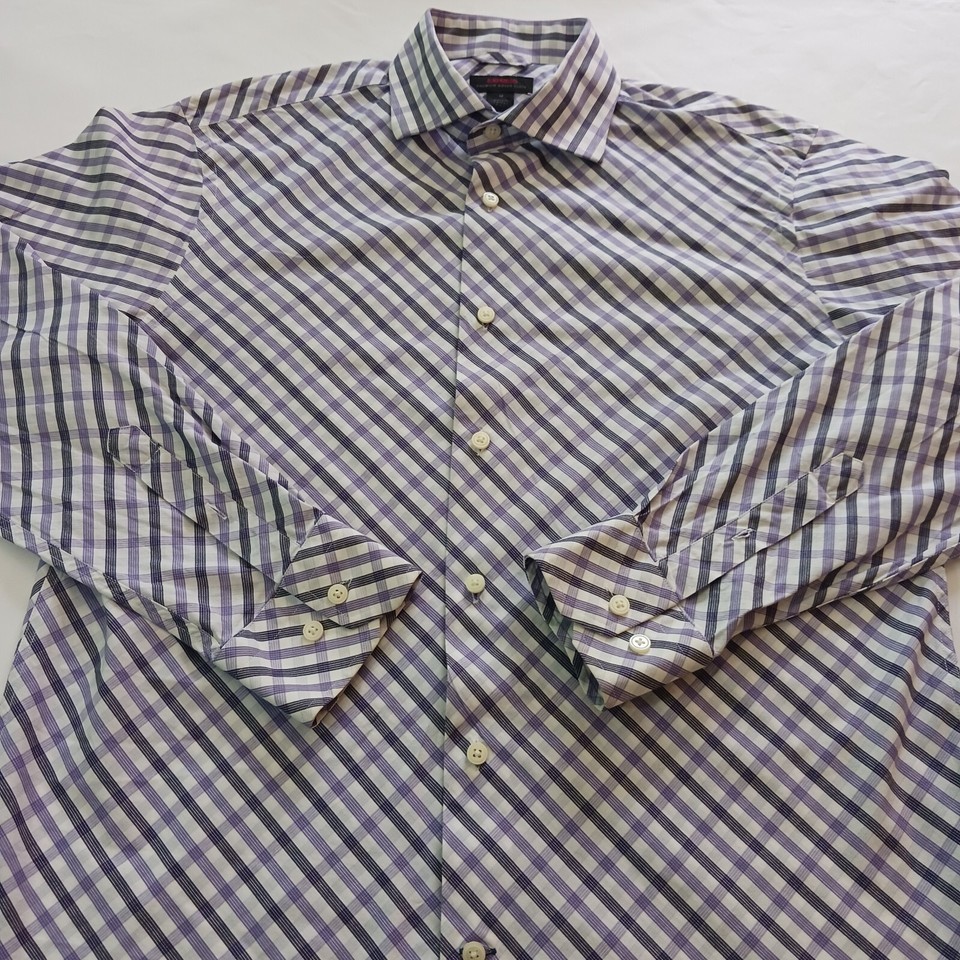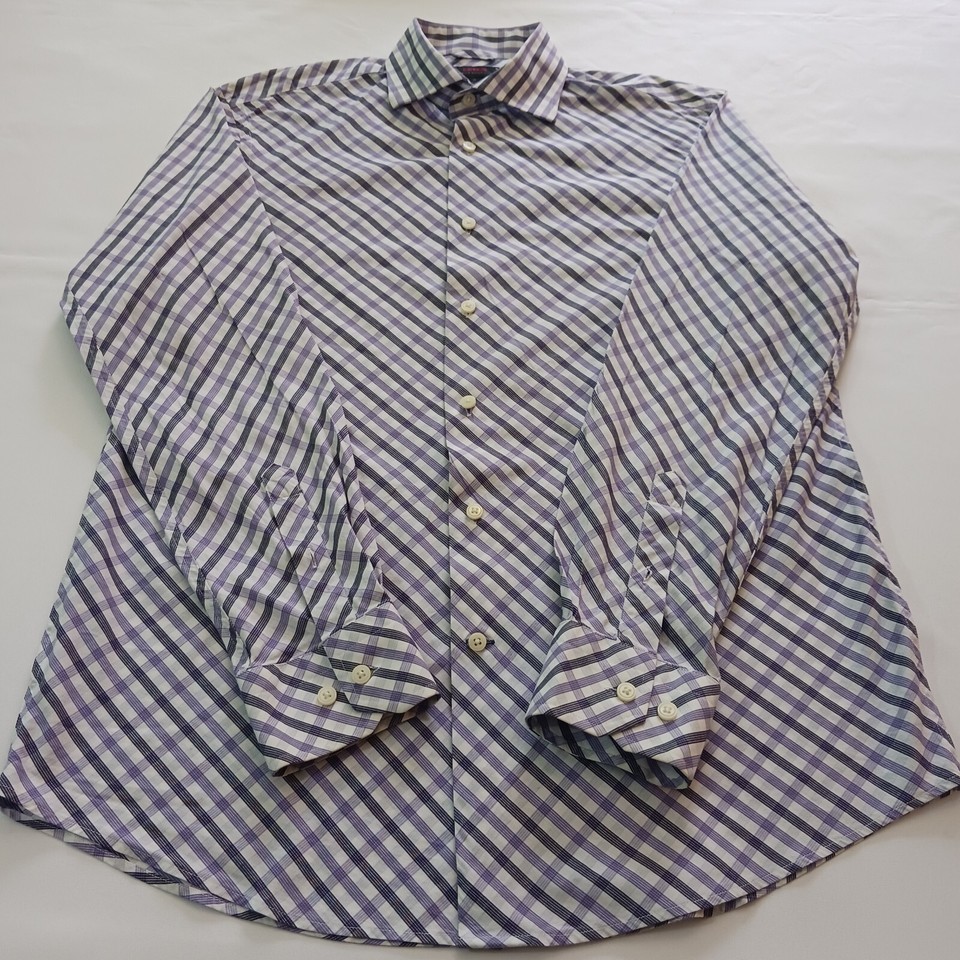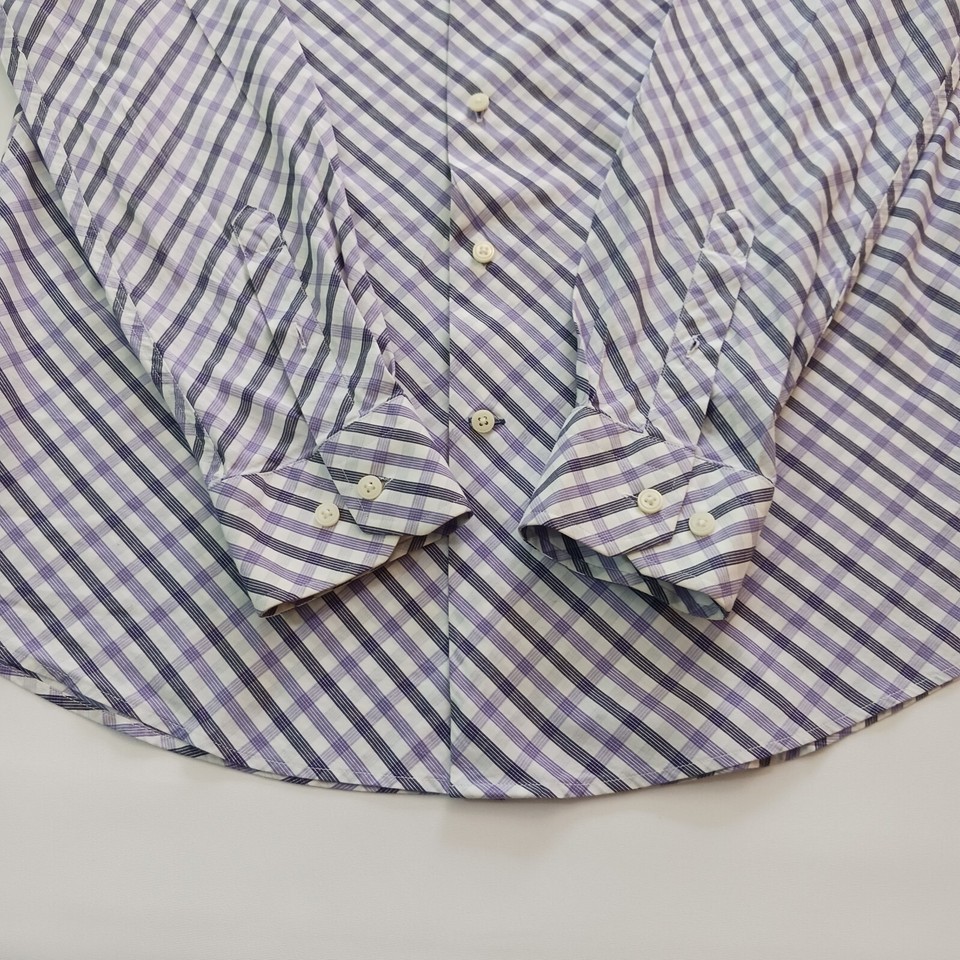 Up for sale is a premium Express button-up shirt for men in size medium. This shirt features a stylish striped pattern and a collared neckline with a button closure. The shirt is made of 100% cotton woven fabric and has long sleeves.