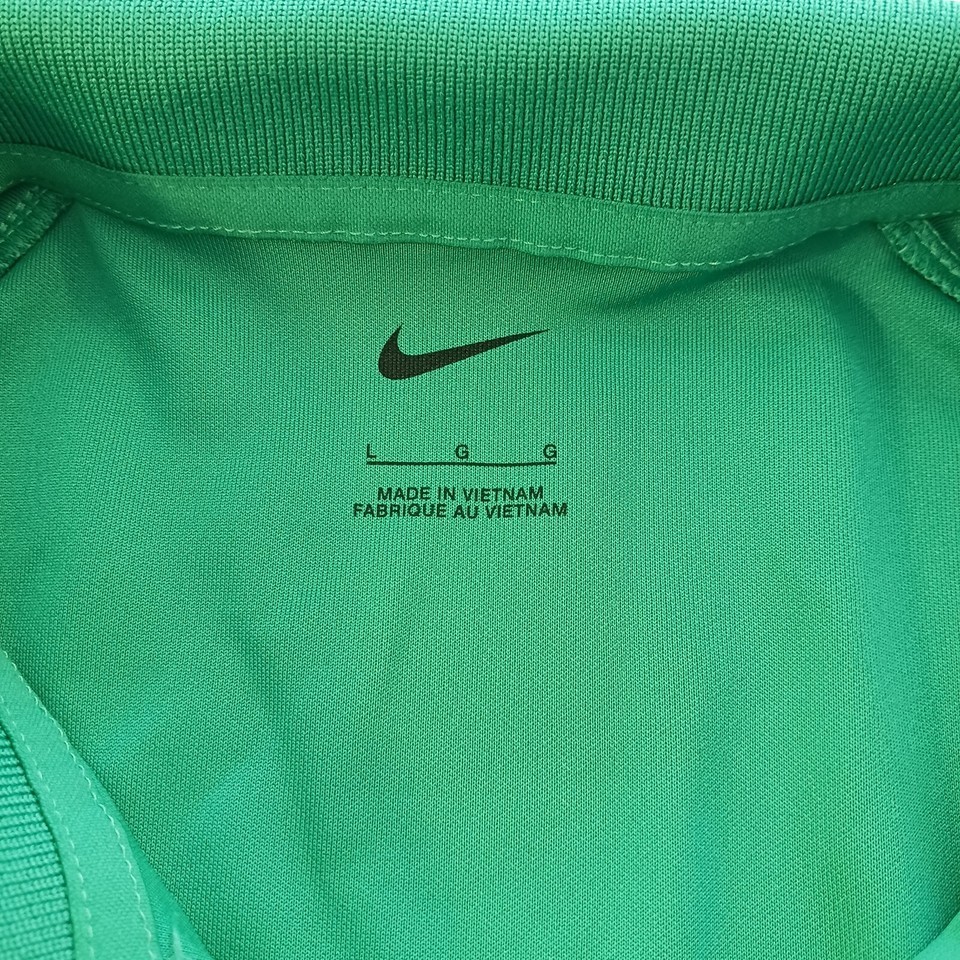 This polo shirt is perfect for those who love the Nike brand, with its signature Ram Steel Framing design proudly displayed on the front. It comes in a size L and features a classic green color that's easy to pair with other clothing items. Whether you're dressing up or down, this shirt is a versatile addition to any wardrobe.