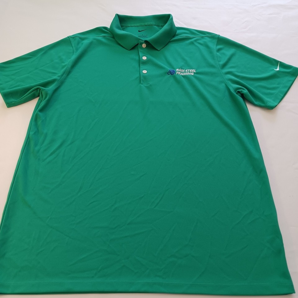 Nike Ram Steel Framing Men's Green Polo Shirt Employee Uniform Short Sleeve L