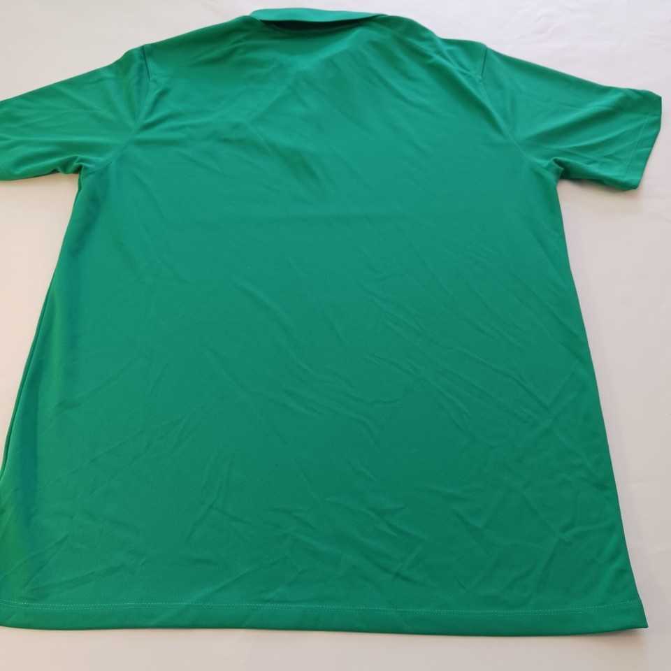 Elevate your style with this sleek and comfortable green polo shirt from Nike. Made with premium quality materials, this pre-owned shirt features a stylish band collar, short sleeves, and a regular fit that's perfect for any occasion. It's ideal for men who want to look and feel their best, whether they're at work or at play.