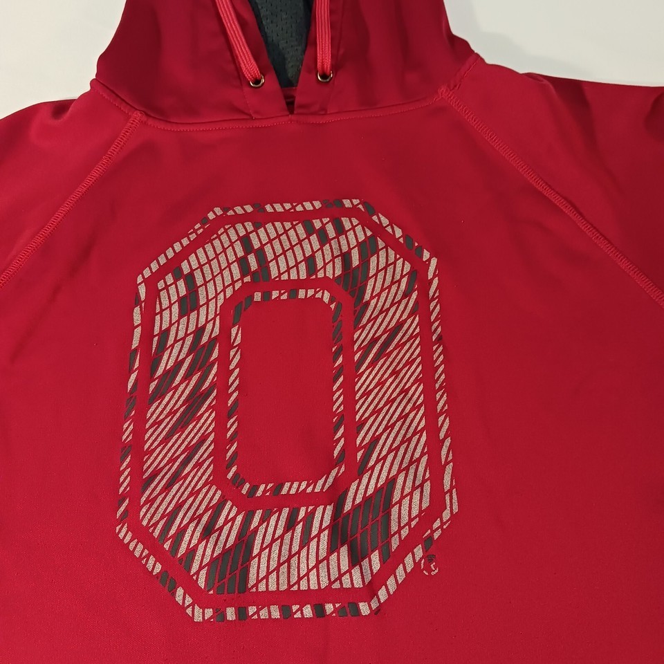 Show your support for Ohio State Buckeyes with this officially licensed men's red pullover sweatshirt hoodie from the Varsity Authentic Apparel collection. The sweatshirt features the Ohio State logo prominently displayed on the chest and is made of high-quality materials to keep you warm and comfortable. Perfect for football fans, this sweatshirt is great for wearing to games or just lounging around the house. Available in size XL, this sweatshirt is perfect for men who want to show their love for Ohio State football.