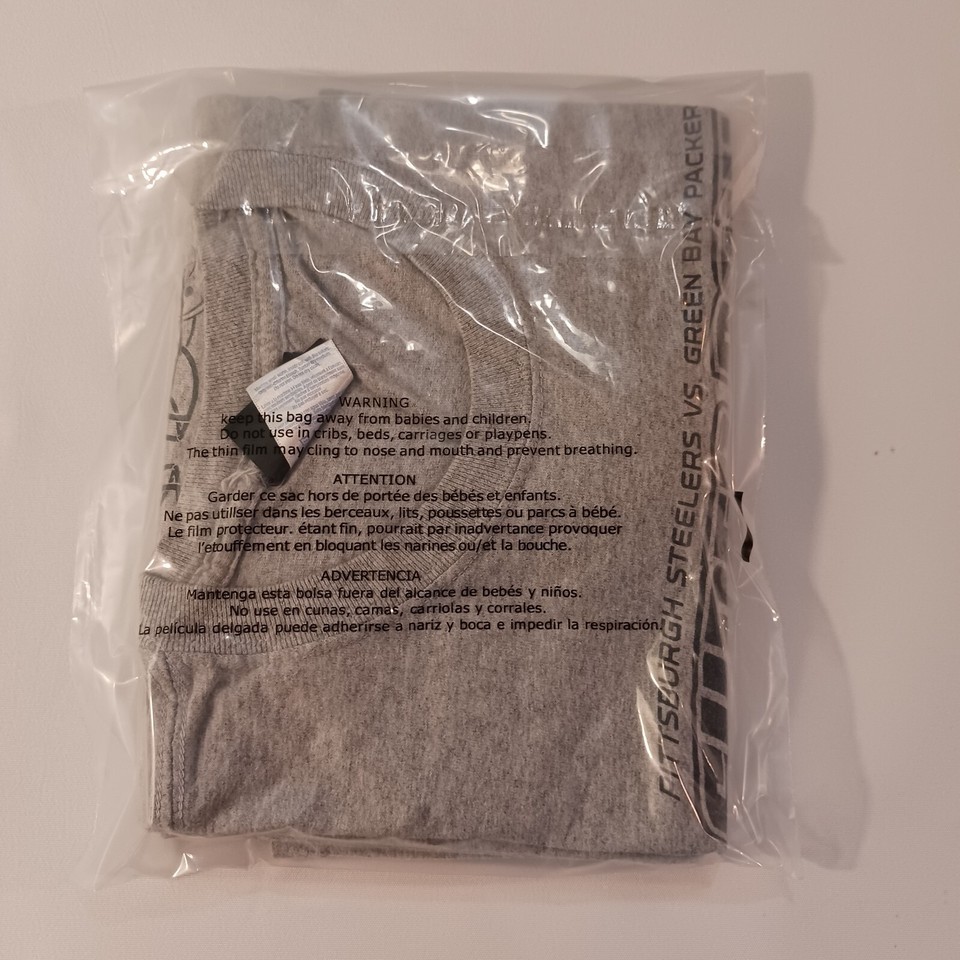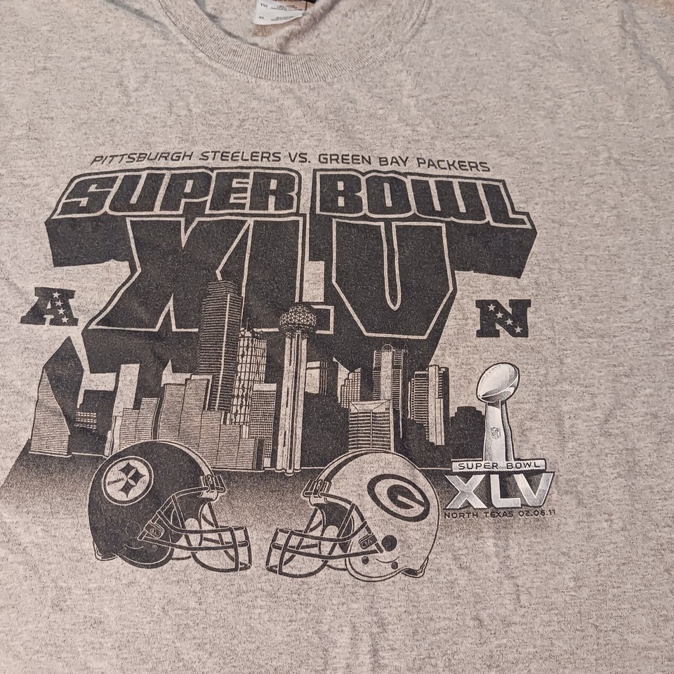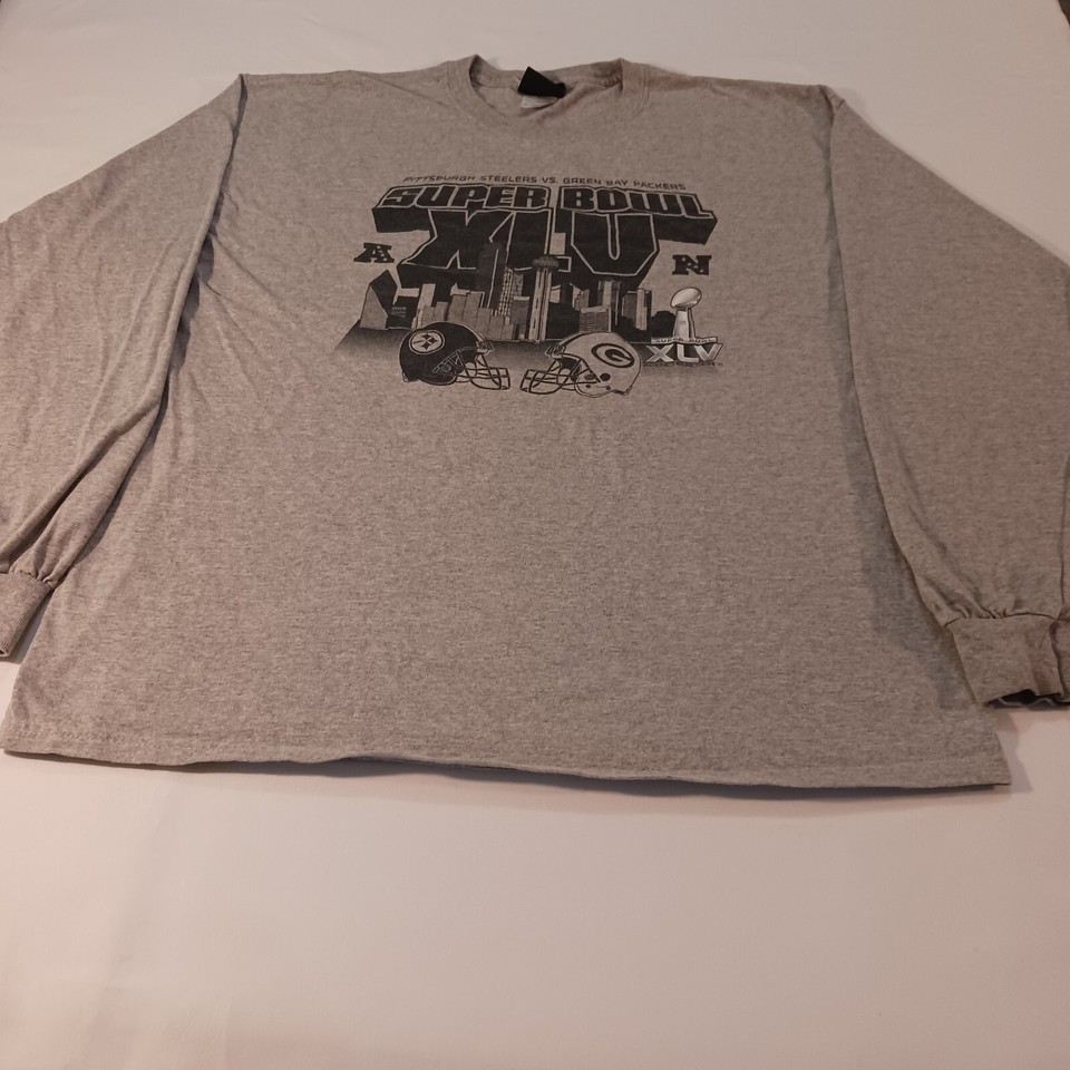 Reebok NFL Super Bowl XLV Steelers vs Packers Men's Gray T-Shirt Long Sleeve XL