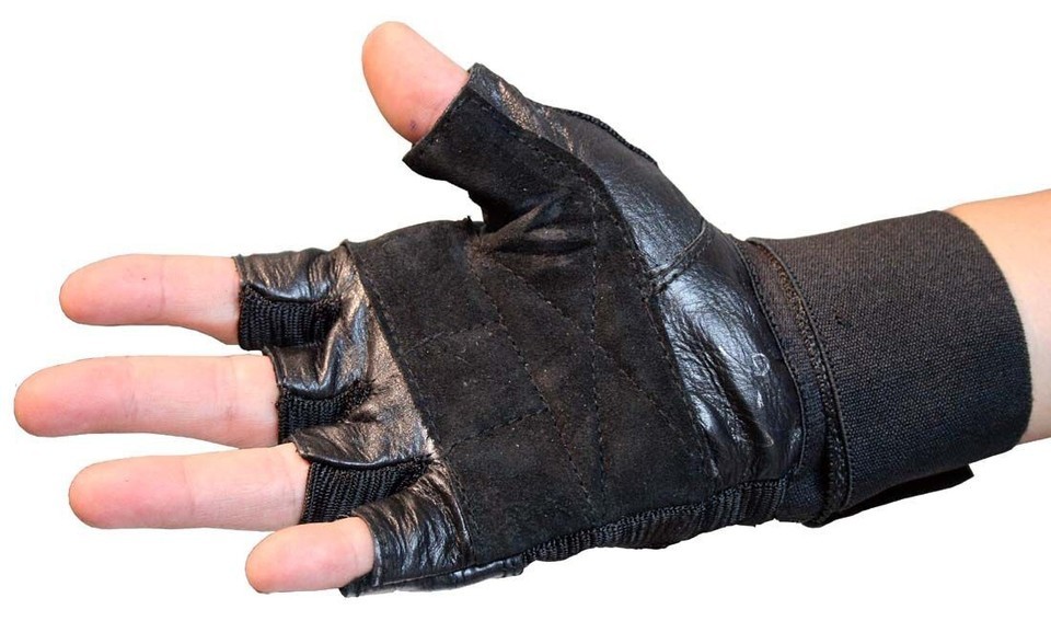 Fingerless Black Weight Lifting Leather Workout Gloves Size Large