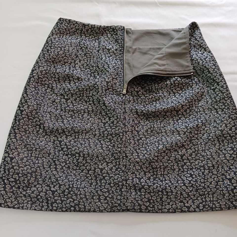 This Loft Petites skirt is a stunning addition to any wardrobe. The black and silver color scheme is perfect for any casual occasion, and the back zipper closure ensures a secure fit. Measuring at a waist size of 30, this A-line skirt with a mid-rise is perfect for women who appreciate style and comfort.