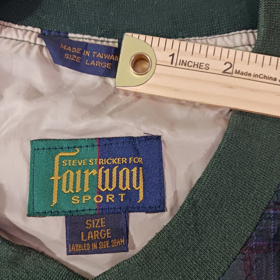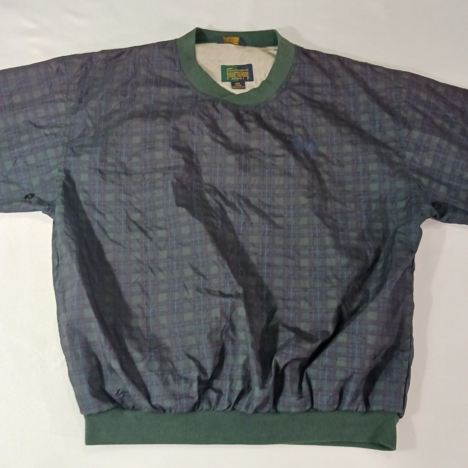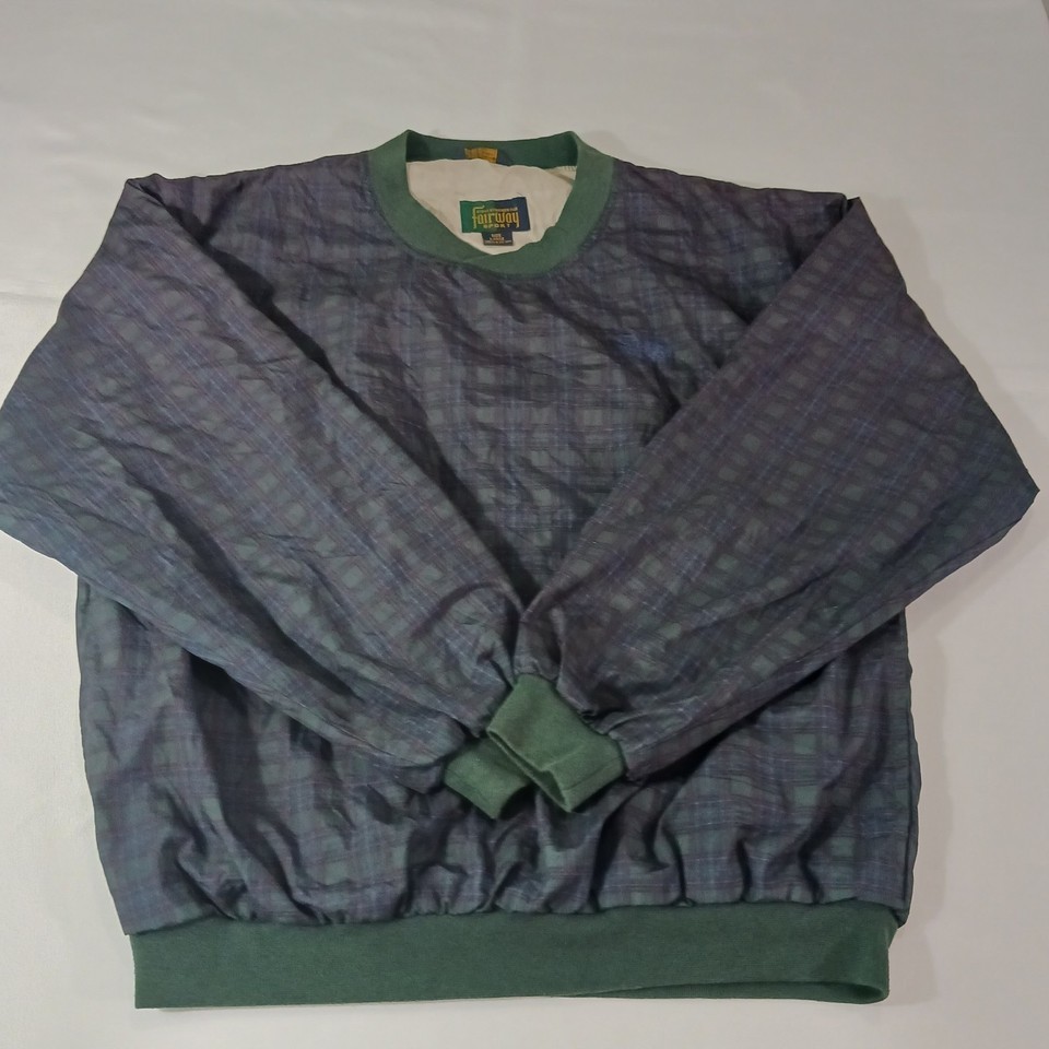 Fairway Sport Mens Blue & Green Long Sleeve Pullover Windbreaker Plaid Jacket L
