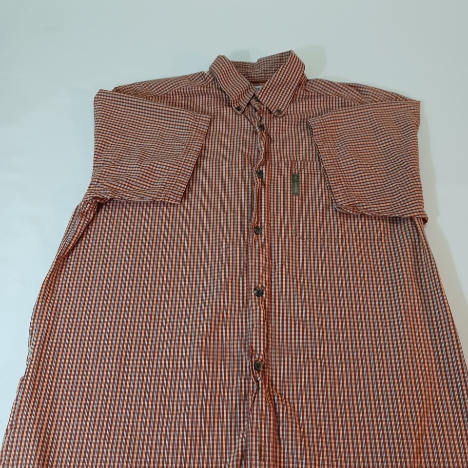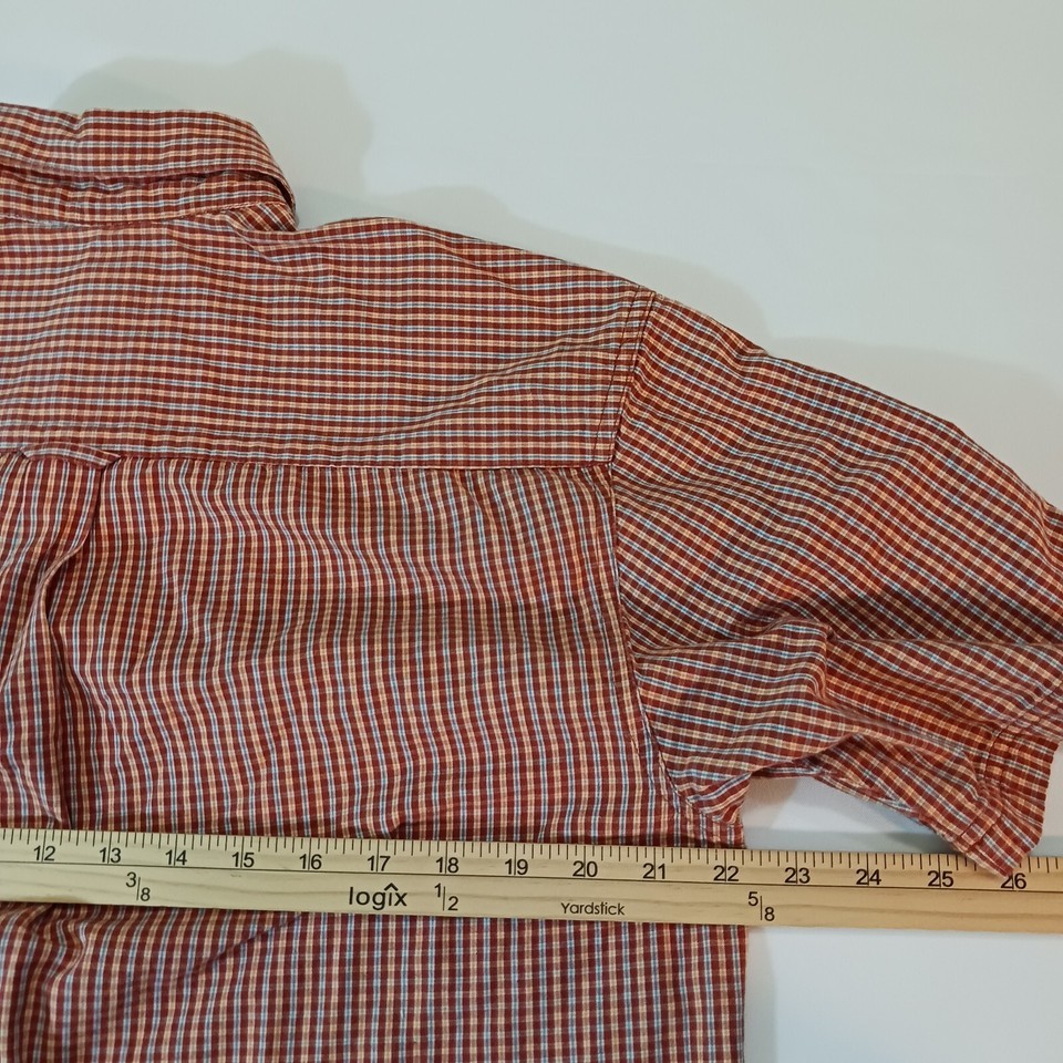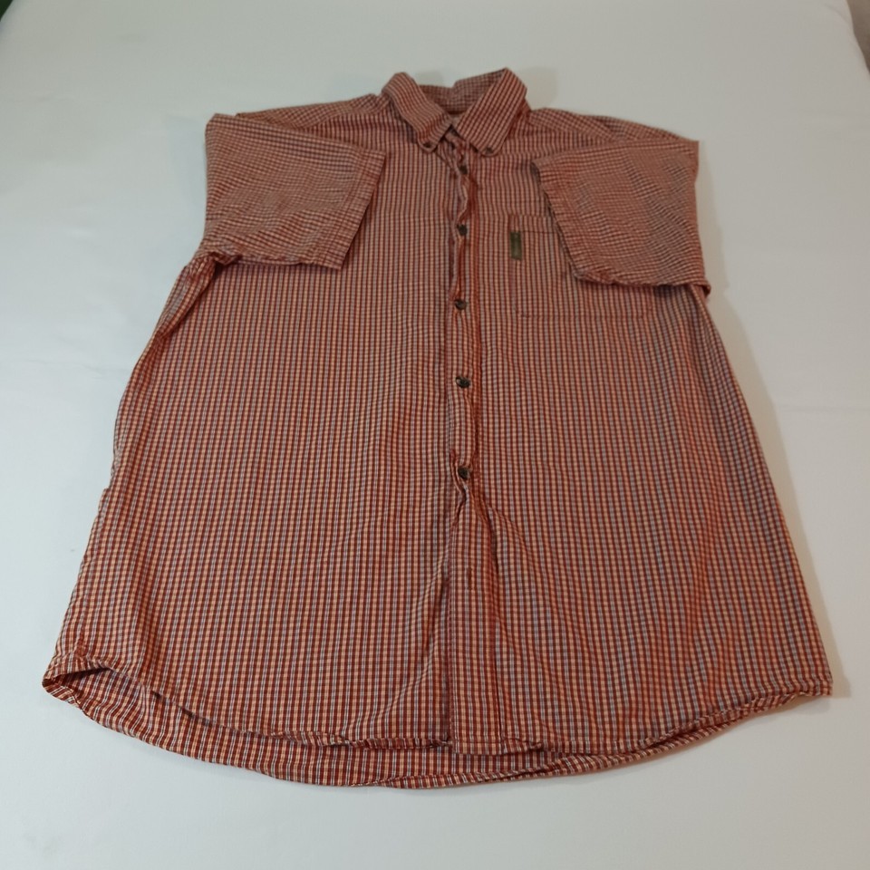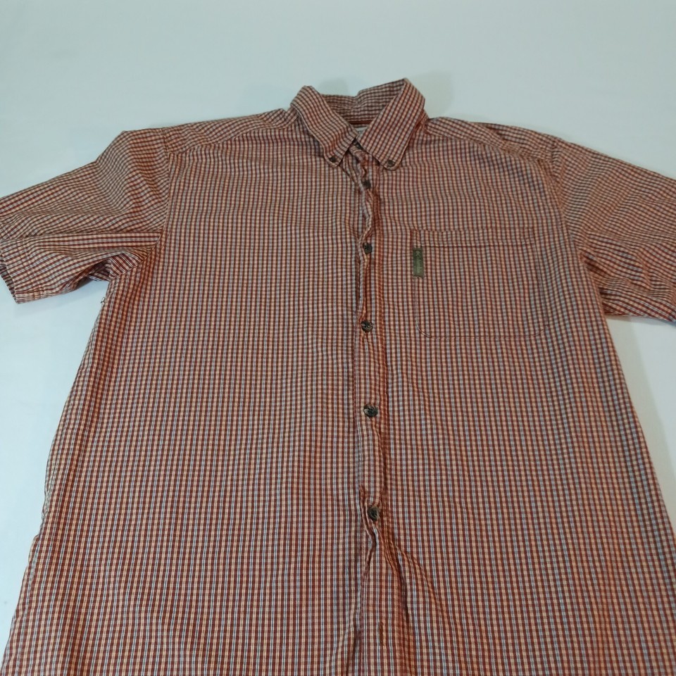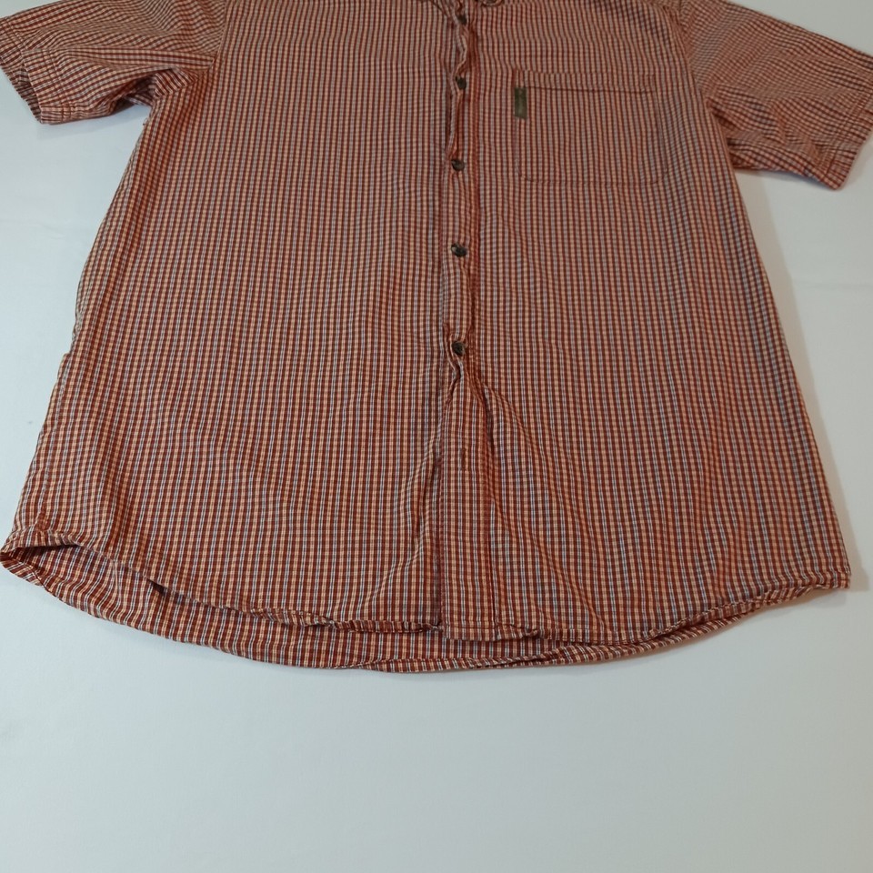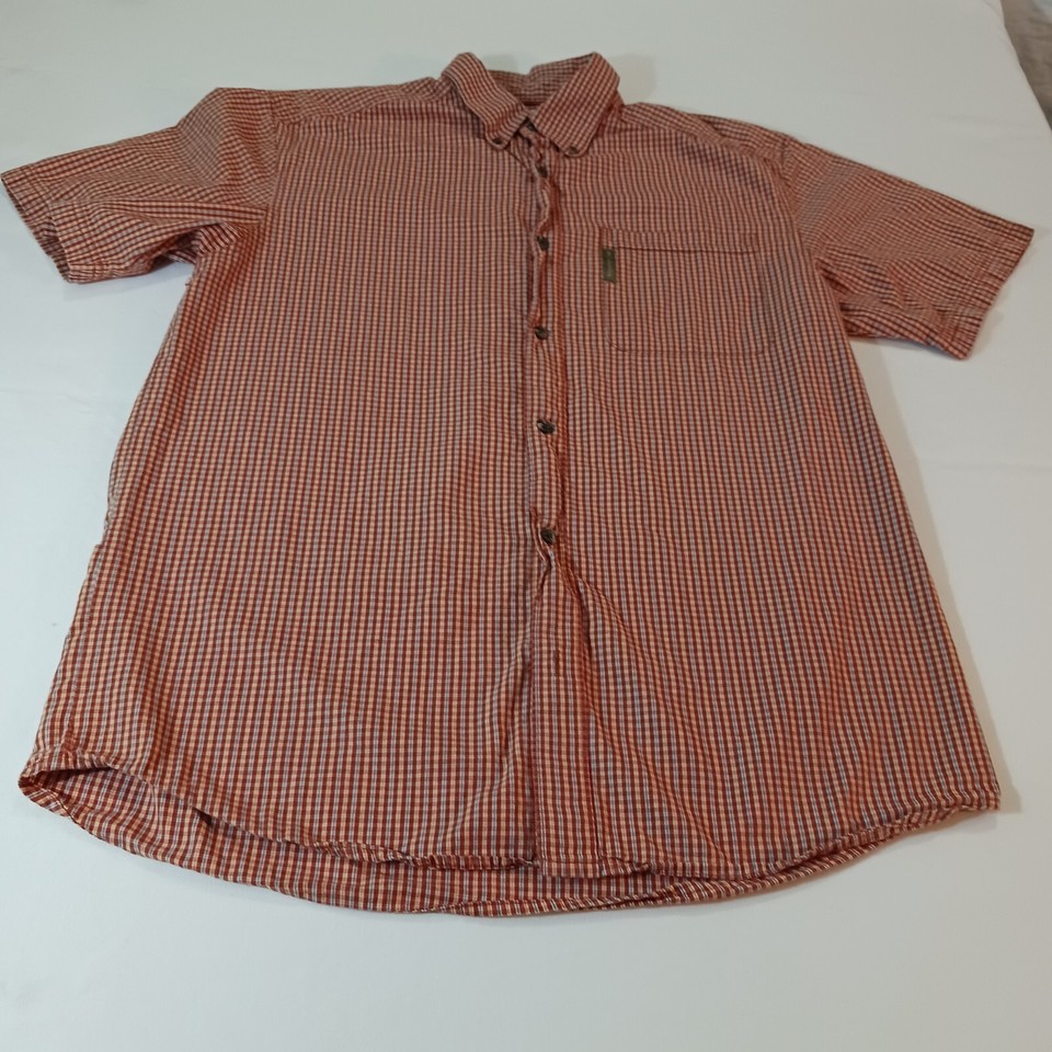 Columbia Sportswear Men`s Button Down Orange Plaid Shirt Short Sleeve Size M