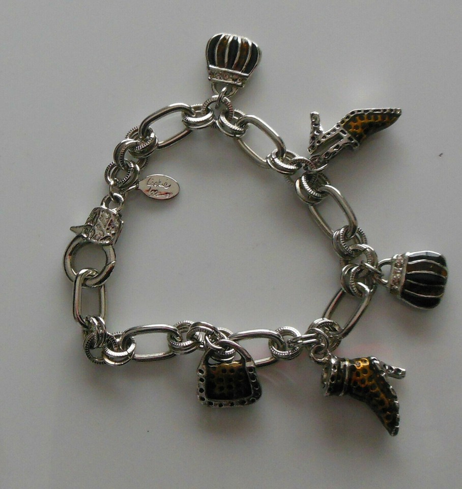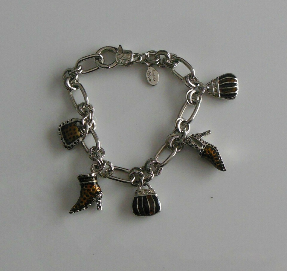 Cookie Lee Silver Tone Enamel Shoes/Handbag Charm Bracelet