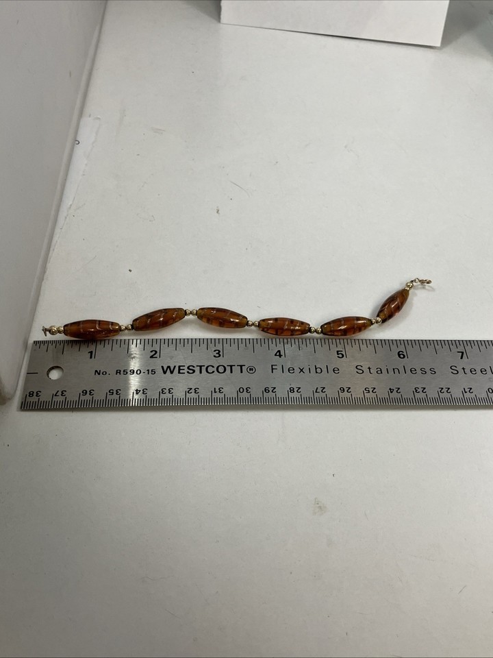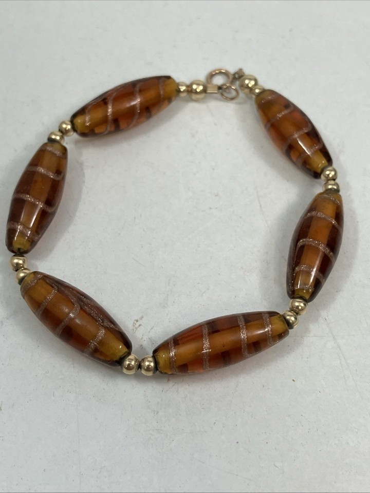 Amber Glass Bead & 14K Gold Filled Clasp & Spacers 6.5” Bracelet