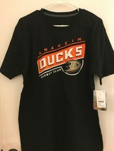New Anaheim Ducks Hockey Club Mens Black Large T Shirt. Get ready for Hockey season with the beautiful Dark Black Medium shirt of the Anaheim Ducks. Regular retail price $19.99.