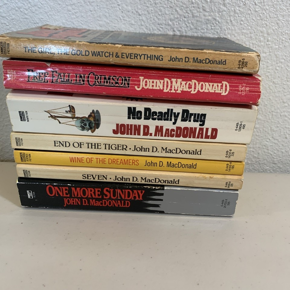 The product is a lot of seven vintage paperback novels by John D. MacDonald, focusing on standalone mystery stories. These novels are in English and were originally published in the United States. The author's works fall under the genres of crime and thriller, as well as mystery, providing readers with engaging and suspenseful narratives. Each book in the lot is a vintage edition, making it a valuable addition to any mystery novel collection.