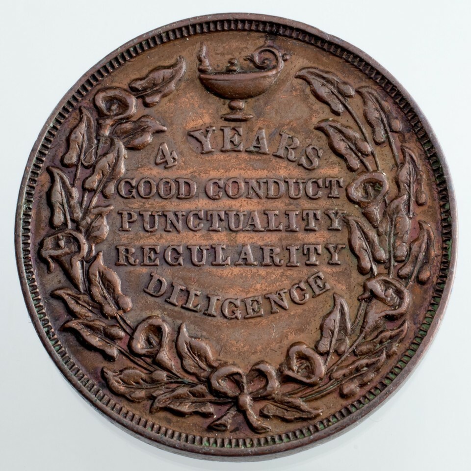Reverse says "4 Years Good Conduct, Punctuality, Regularity, Diligence"
