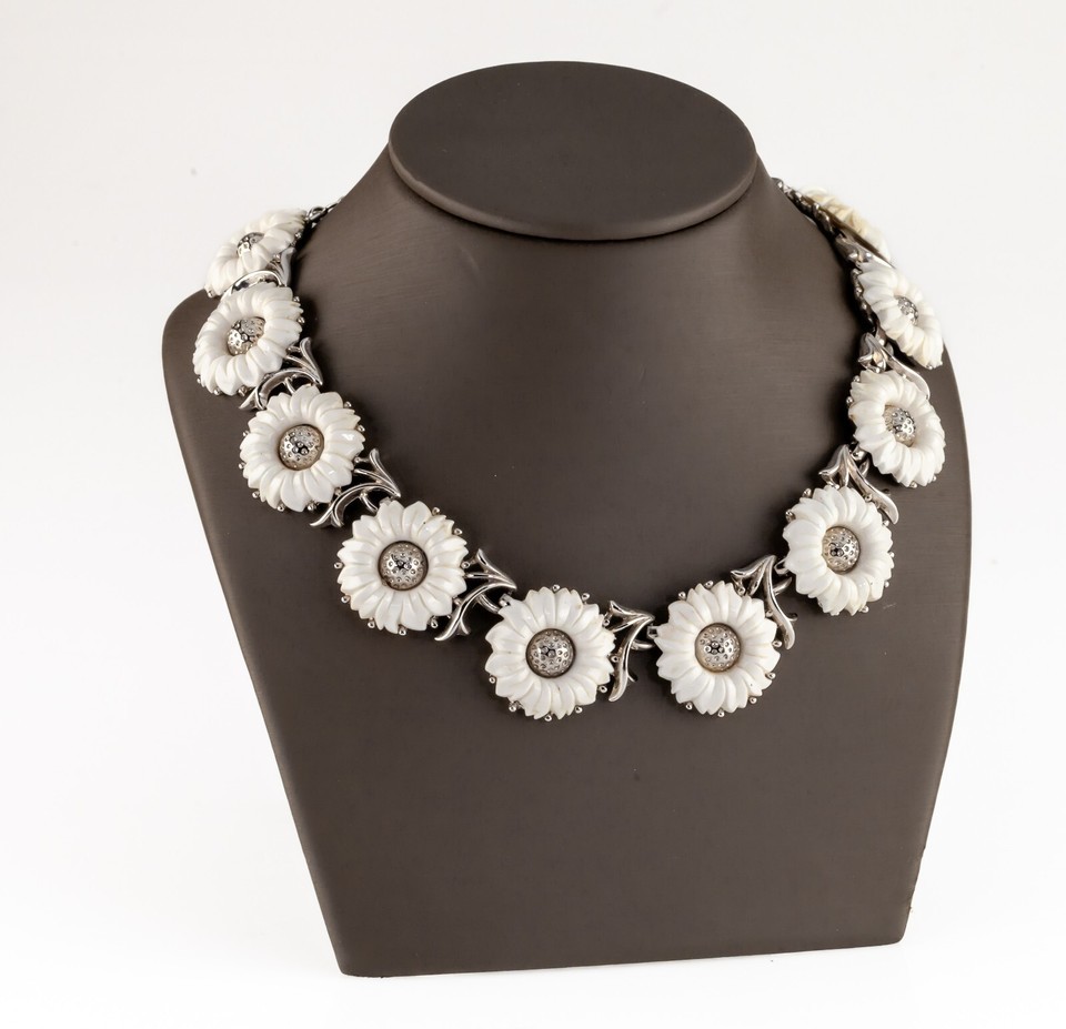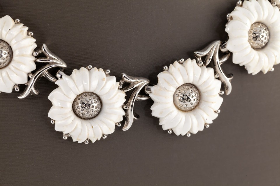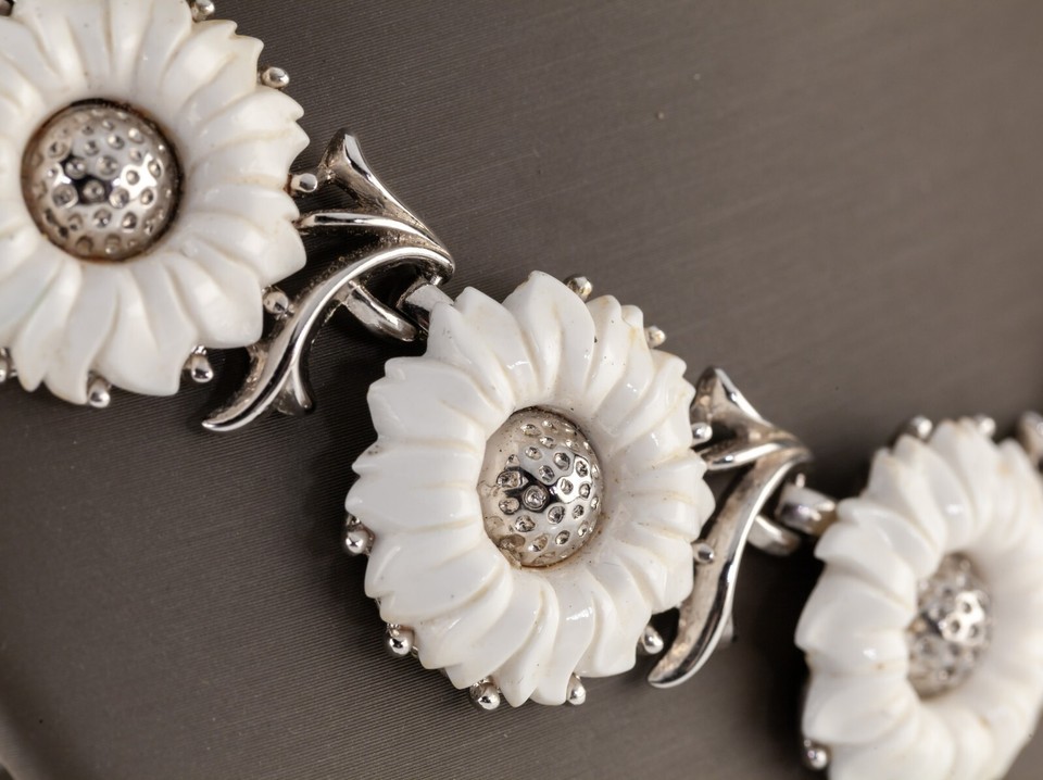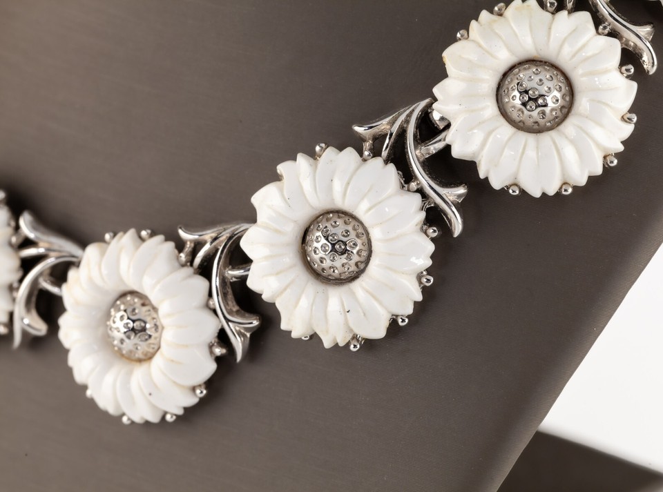 Trifari Lucite Sunflower Silvertone Vintage Costume Jewelry Necklace