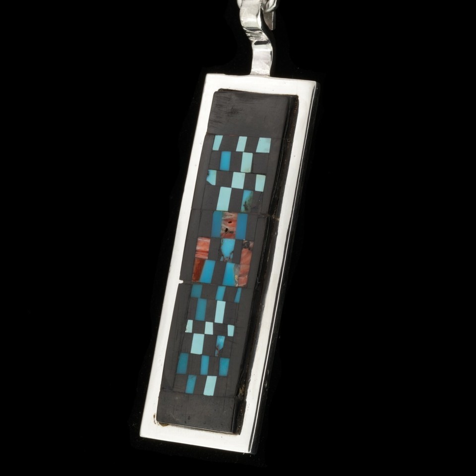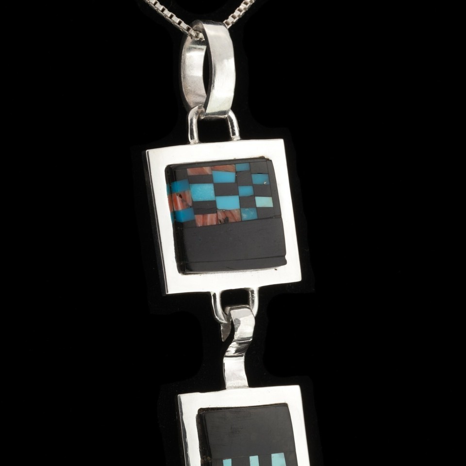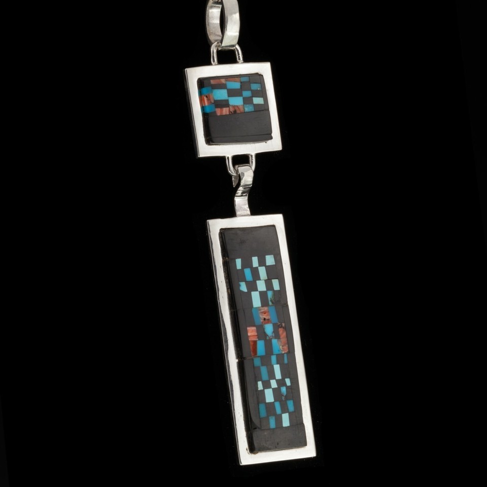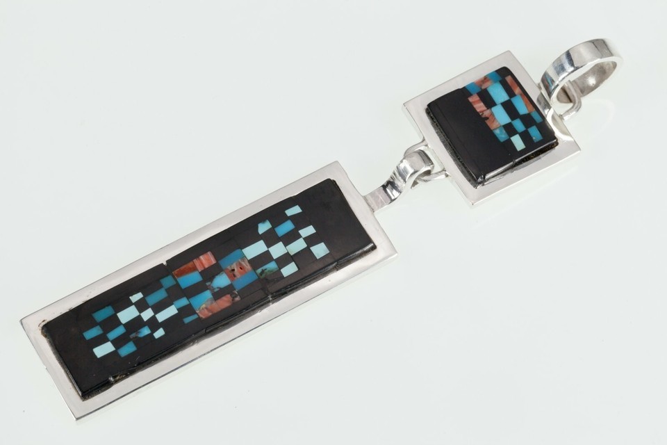 Alex Beeshligaii Navajo Inlay Sterling Silver Dangle Pendant 23.4gr