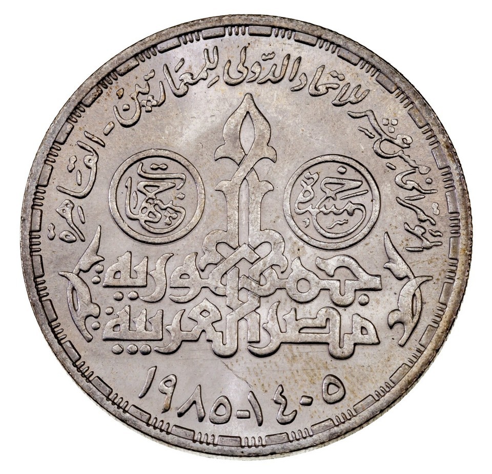 1405-1985 Egypt 5 Pounds Silver coin in BU Condition, XV UIA Congress KM 593