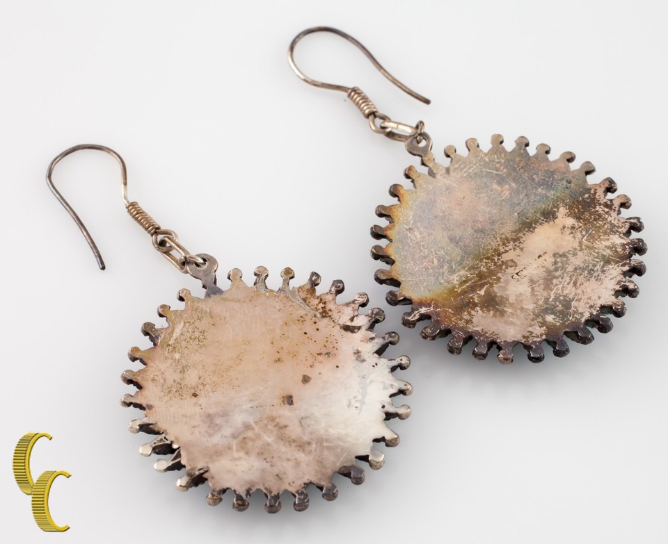 Native American .925 Sterling Silver Turquoise Wheel Earrings
