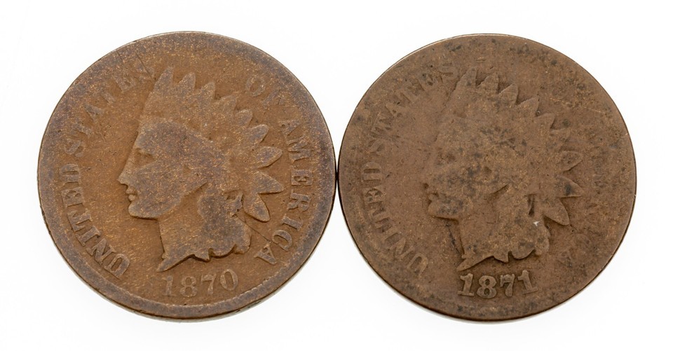Lot de 2 cents indiens (1870 + 1871) dans une bonne couleur brune couleur brune