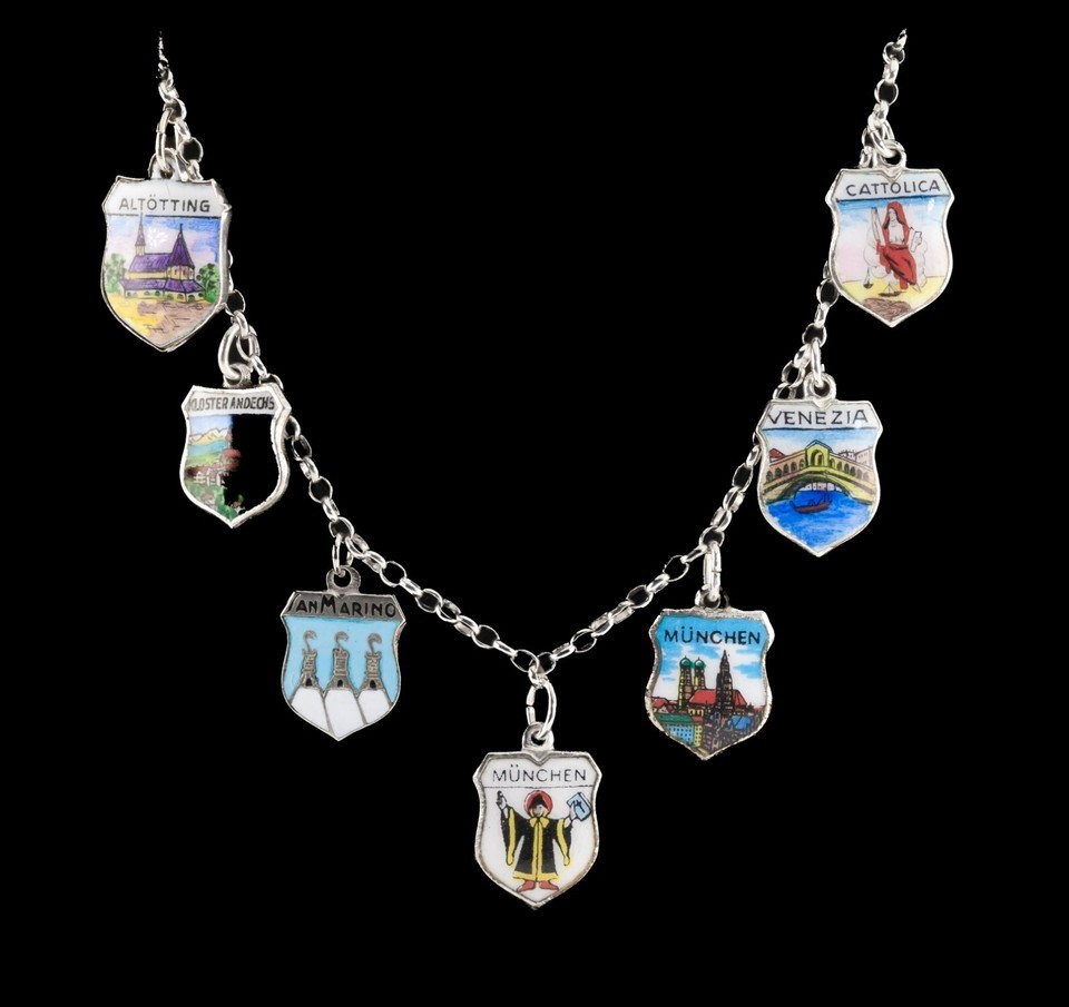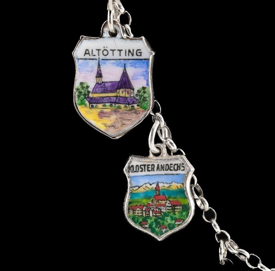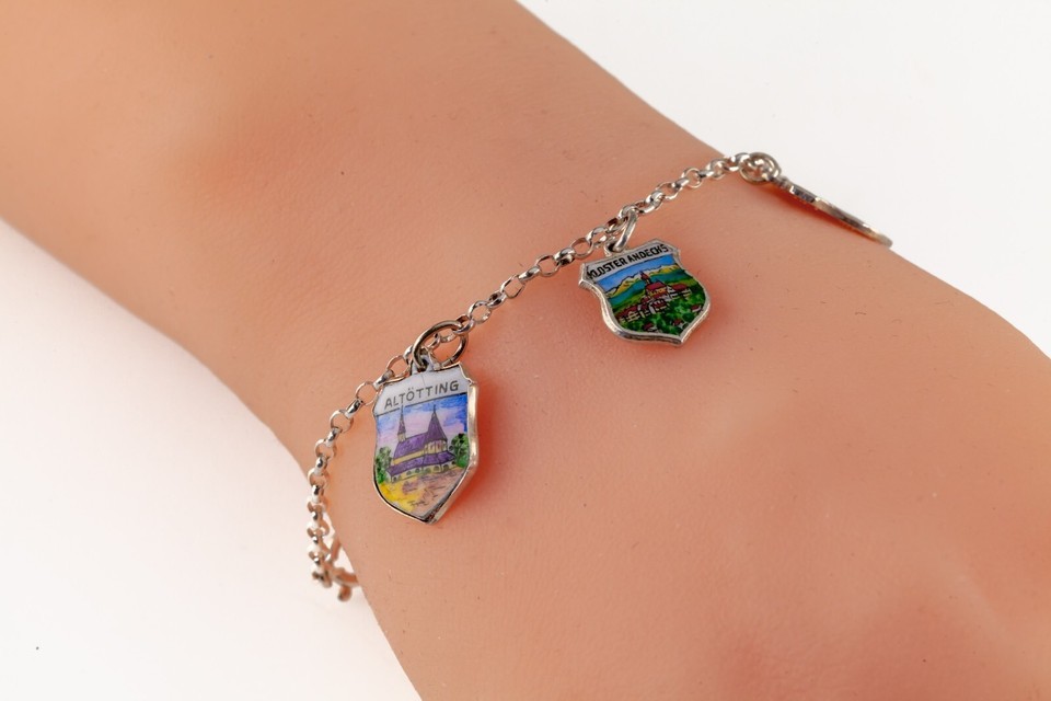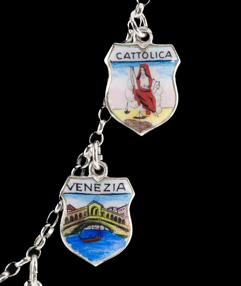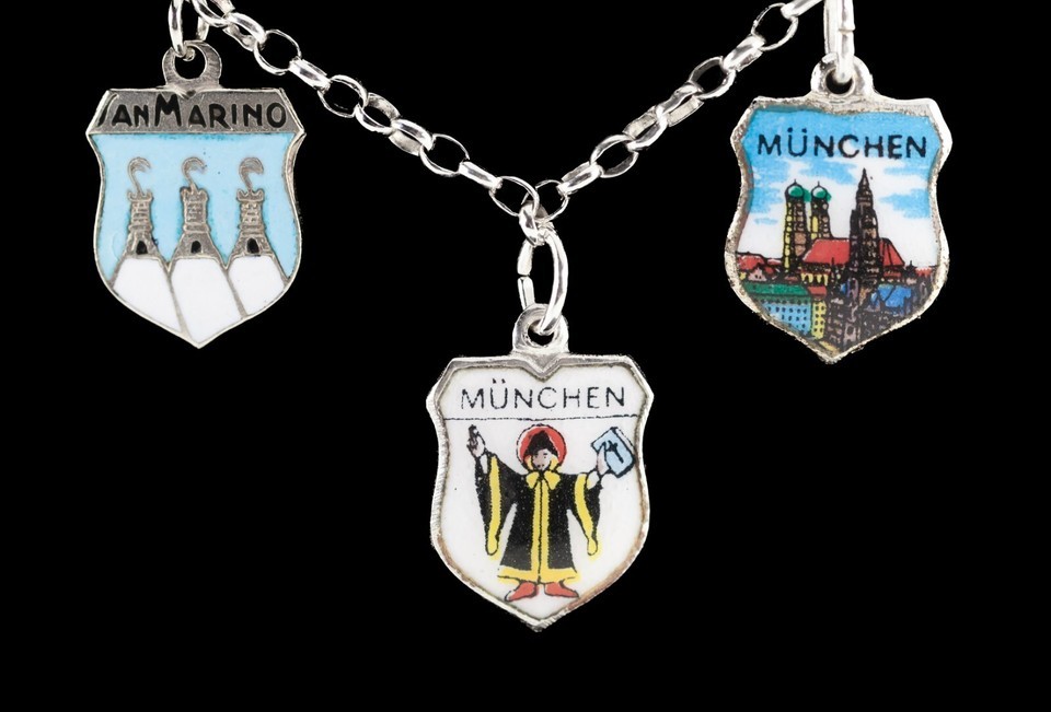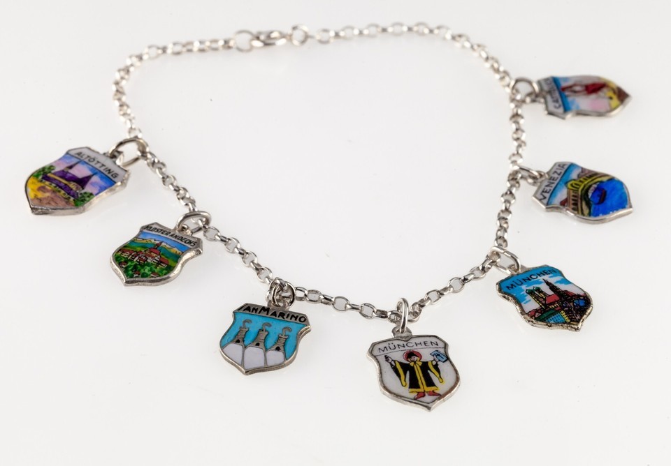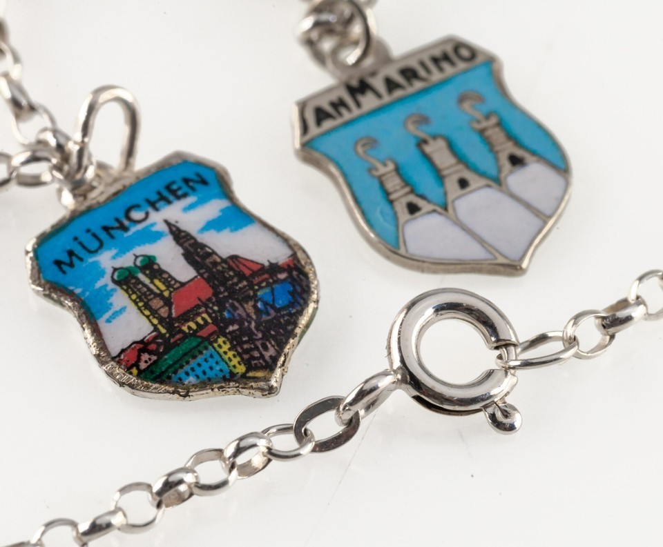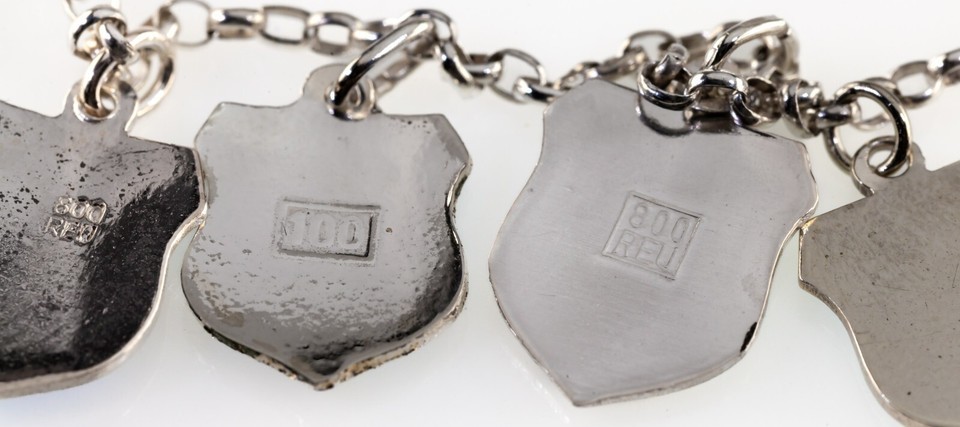 Beautiful Vintage 800 Silver Enamel Italian Shield City Charm Bracelet 8.25"