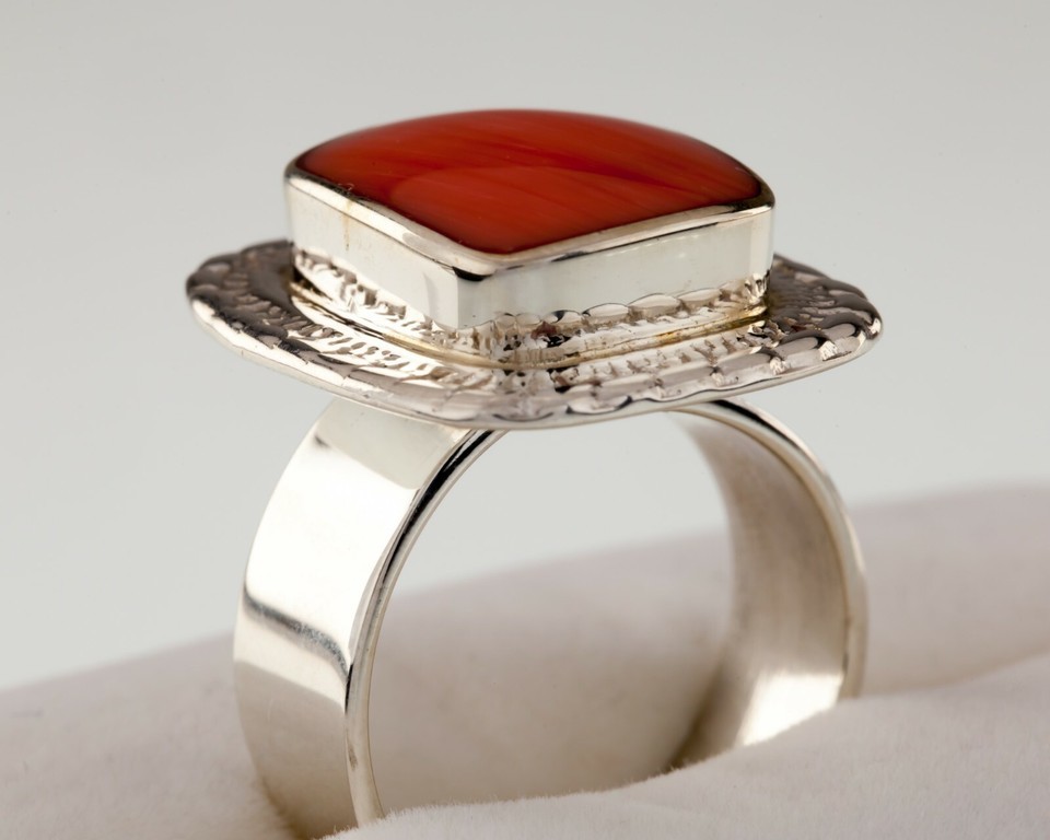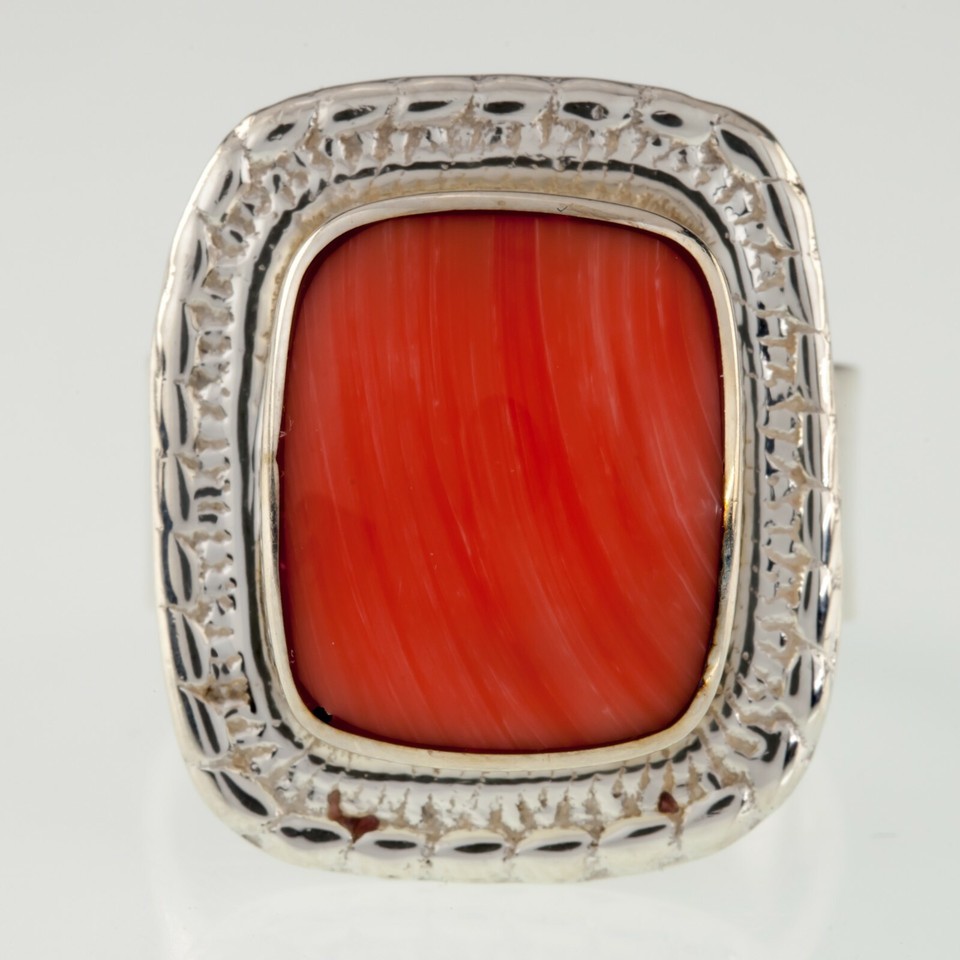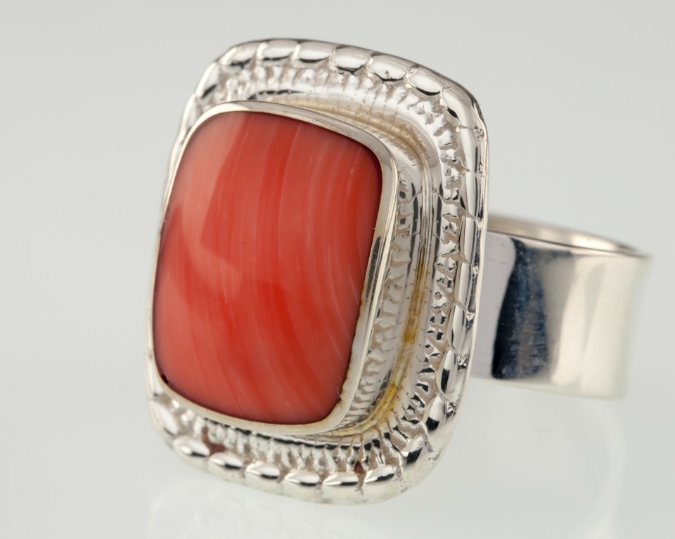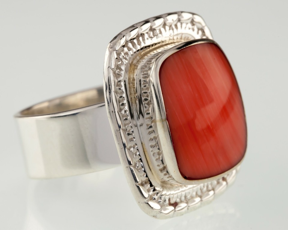 Vintage Mexican Sterling Silver Ring with Spiny Oyster Shell and Accented Pattern