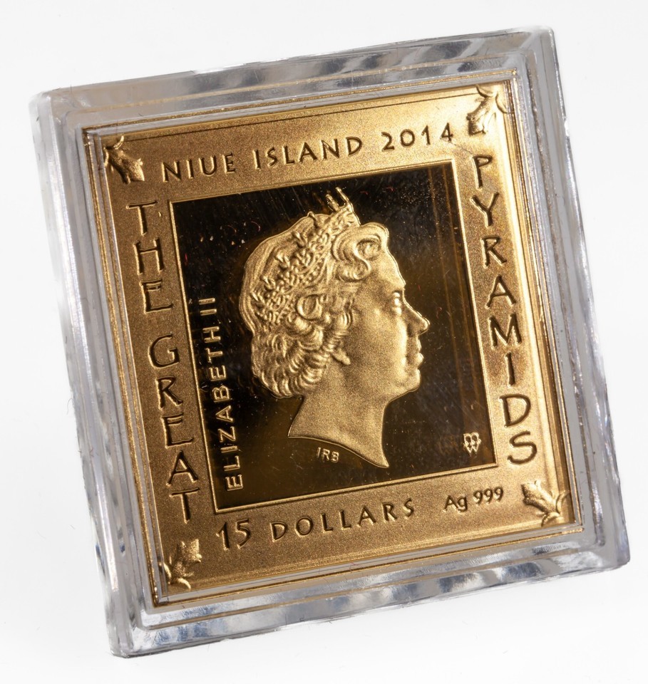 2014 Niue Island 3oz Silver Gold Plated Great Pyramids Bar w/ Box & CoA RARE
