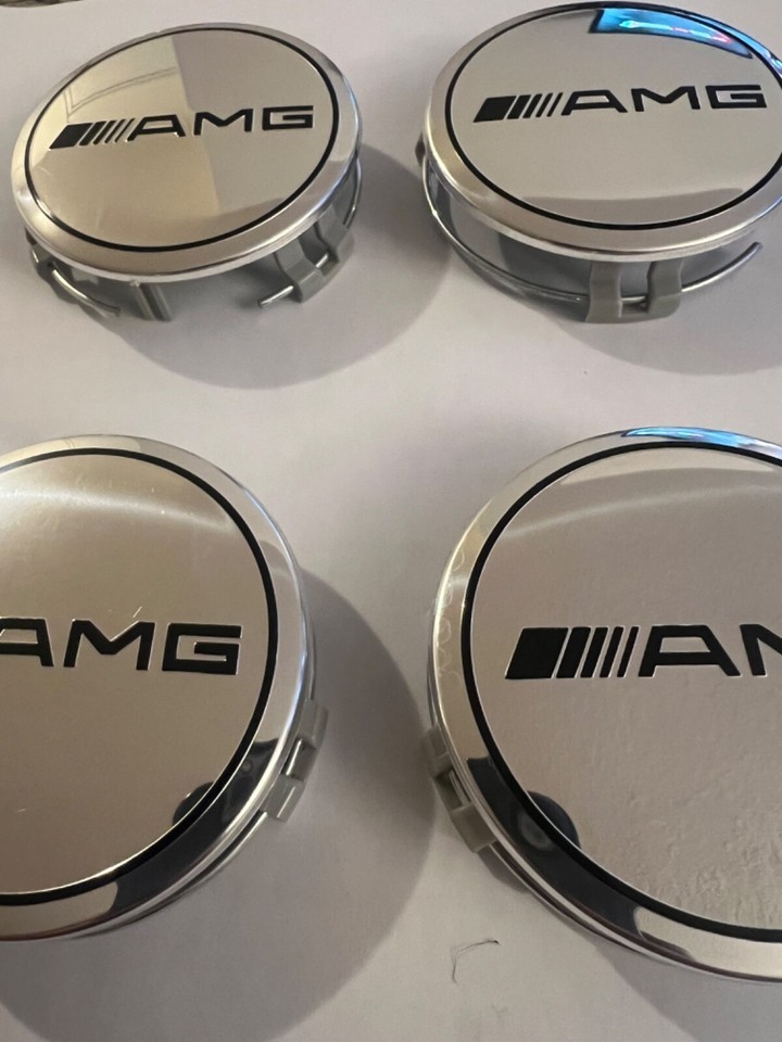 Mercedes Benz AMG Silver alloy wheel center caps hubcaps