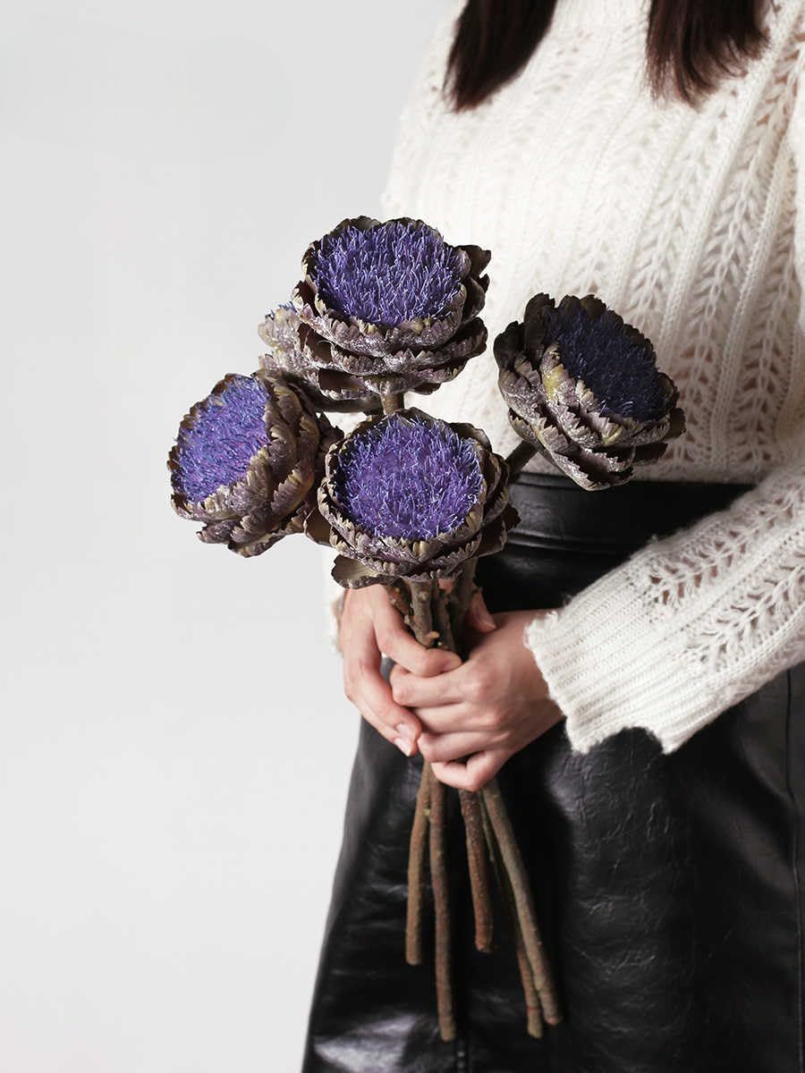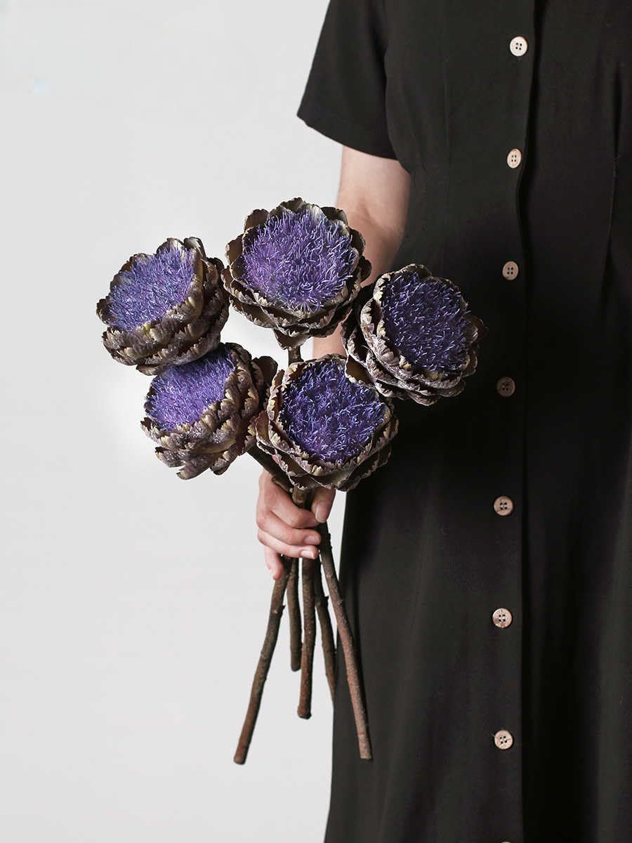 Product description: Transform your space with this striking Vintage Artichoke Artificial Flower. Standing 48cm (18.8 inches) tall with a textured 10.5cm (4.1 inches) purple bloom, this high-end faux botanical brings sophisticated art deco flair to any setting. The realistic detailing captures the unique charm of vintage European florals, from the richly textured head to the naturally sculpted stem. Display this statement piece alone in a modern ceramic vase for minimalist elegance, or combine multiple stems to create a dramatic arrangement. Perfect for dining tables, living rooms, or boutique venues, this maintenance-free artificial flower maintains its vibrant purple hue and distinctive form without watering or special care. Ideal for interior designers, event stylists, or anyone seeking to add lasting botanical drama to their decor, this artichoke stem delivers sophisticated visual impact for both everyday enjoyment and special occasions.