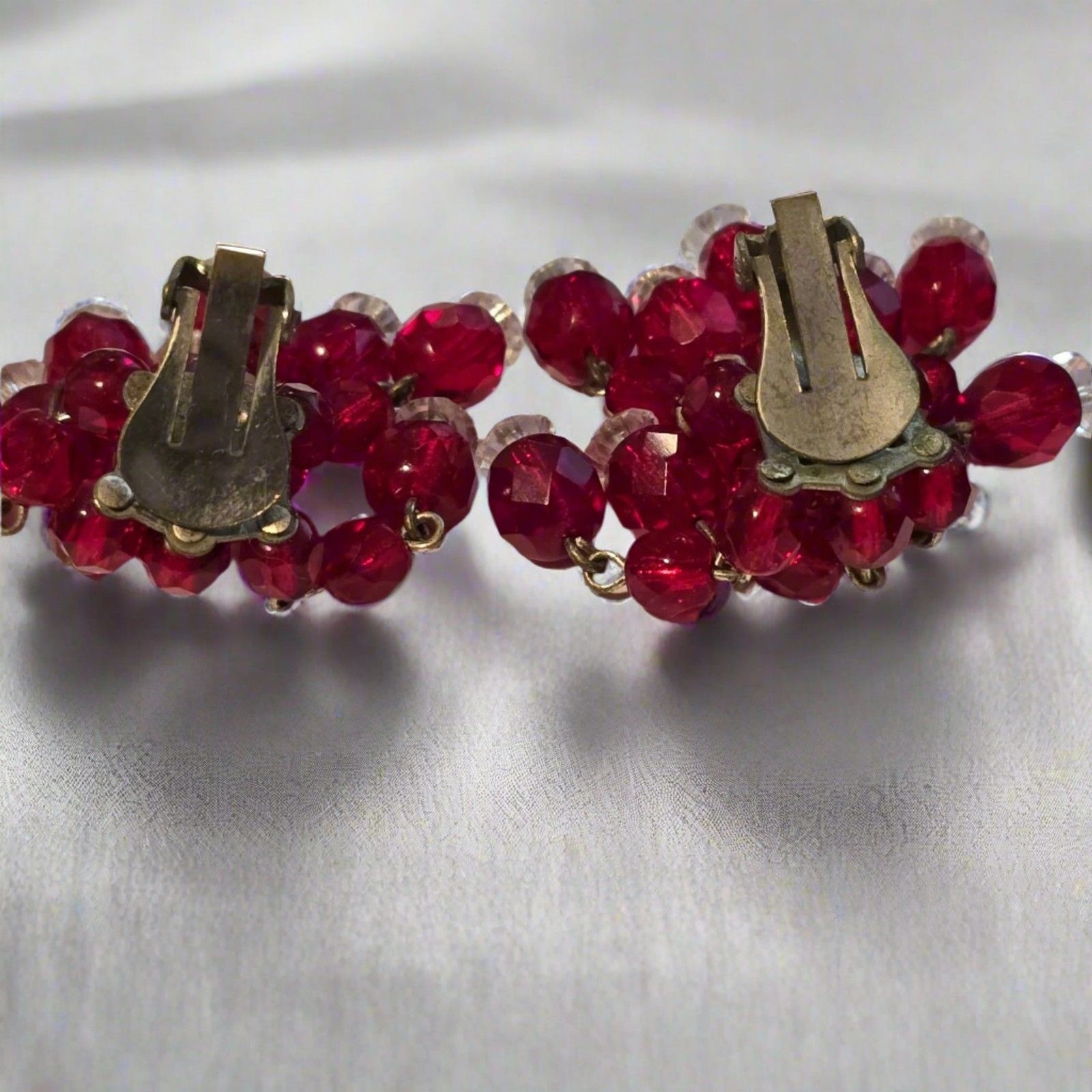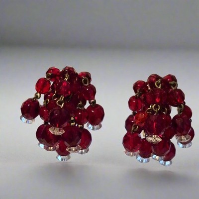 Vintage Red Bead Cluster Clip-On Earrings – and 27 similar items
