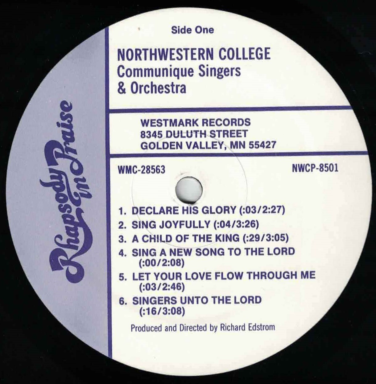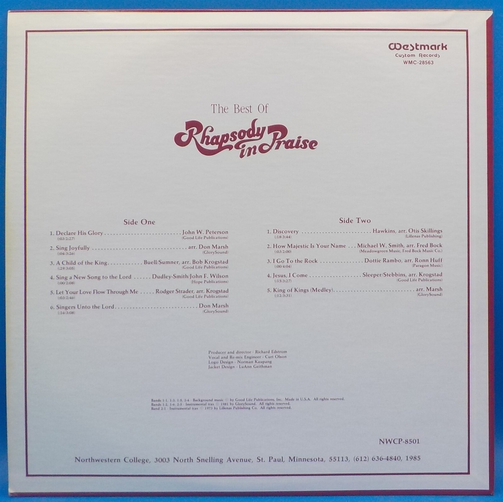 Northwestern College Communique Singers LP "The Best Of Rhapsody in Praise" BX12