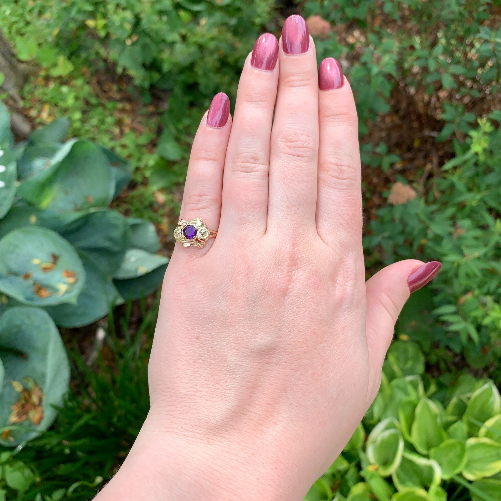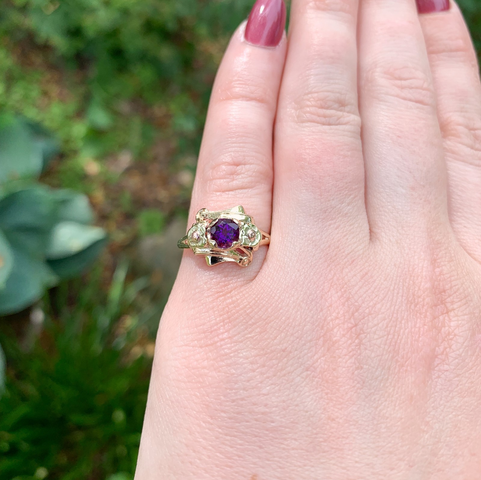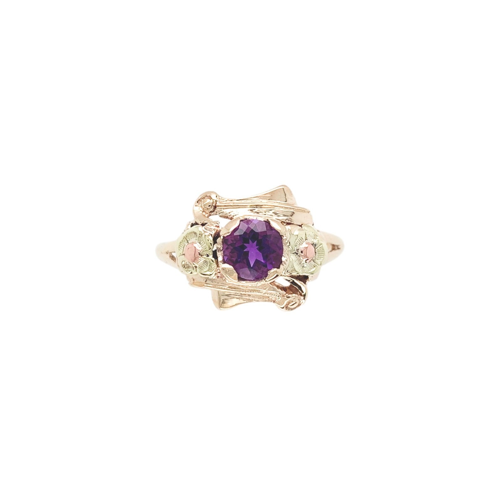 10k Tri-Color Gold Retro .53ct Genuine Natural Amethyst Ring Size 6.75 (#J7442)