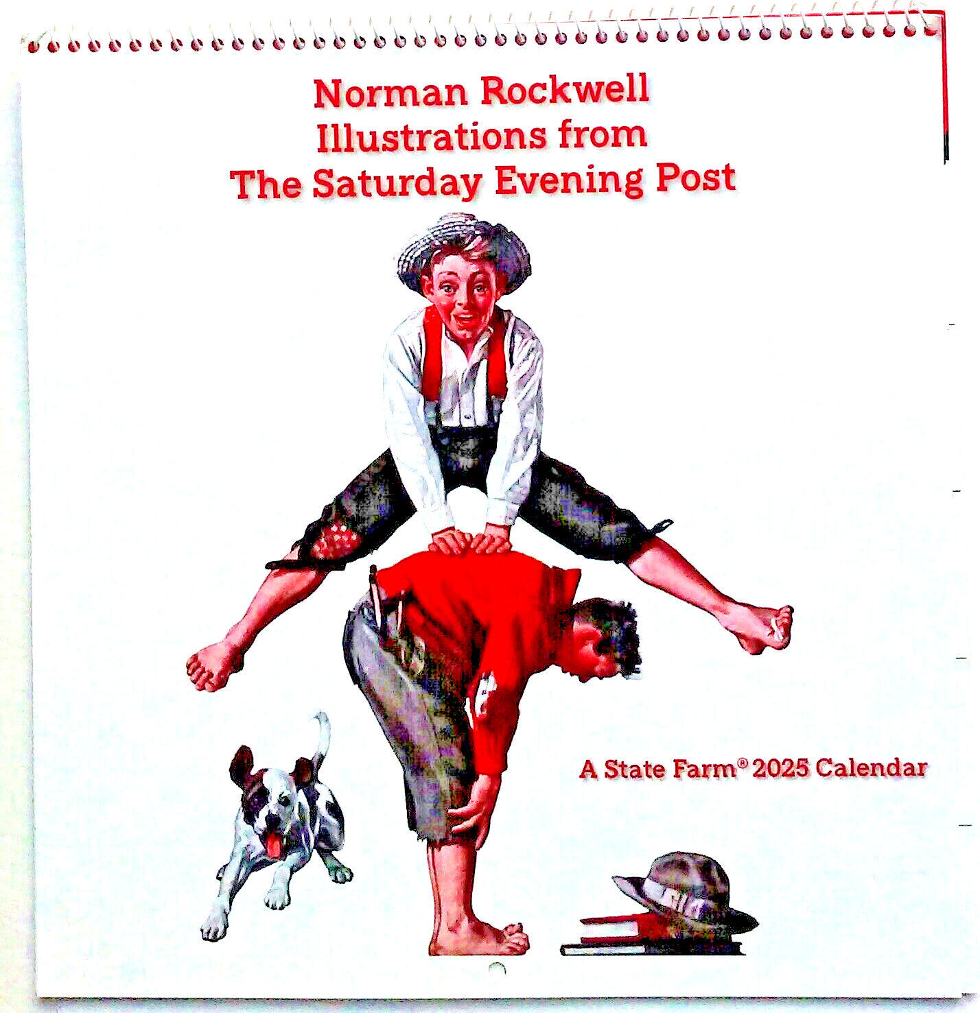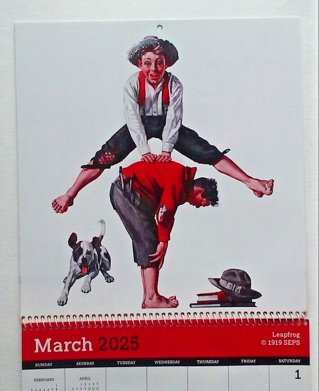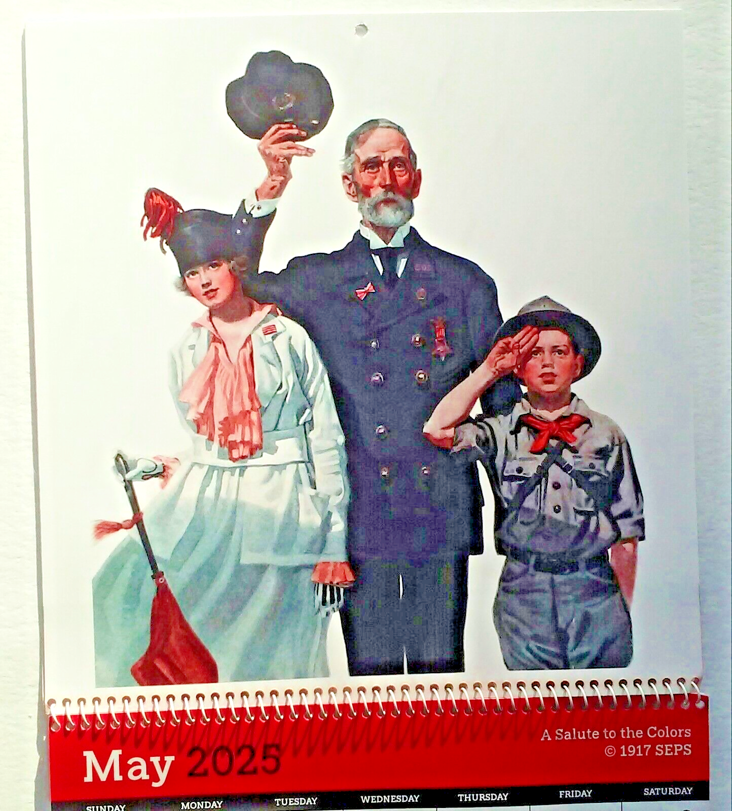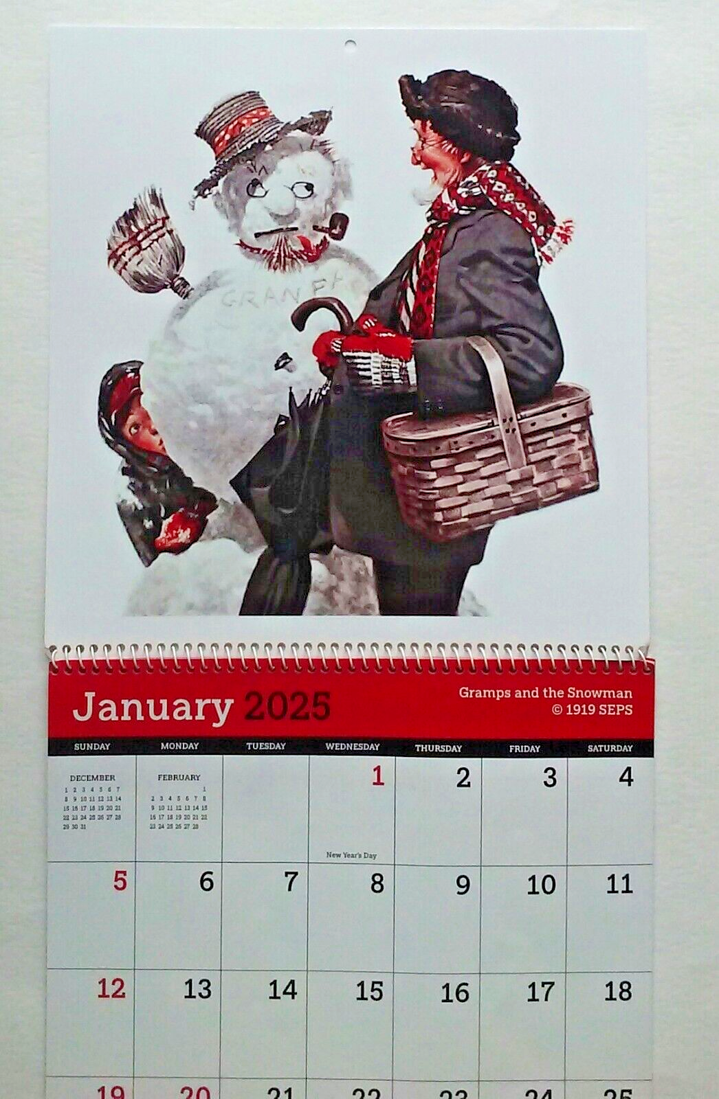 2025 NORMAN ROCKWELL Wall Calendar. This wirebound wall calendar measures 9? wide by 19? high (when open). It features colorful illustrations/paintings by American artist Norman Rockwell featured on Saturday Evening Post magazine covers. NOTE: The monthly calendar pages note all major holidays. See details below: