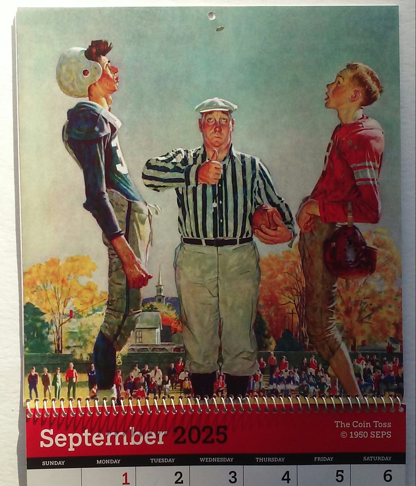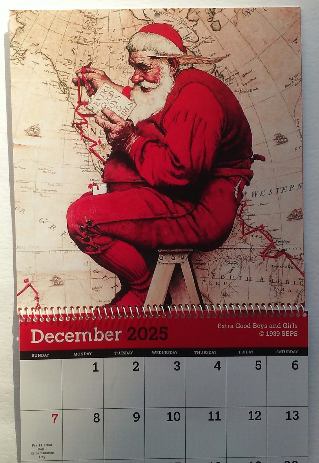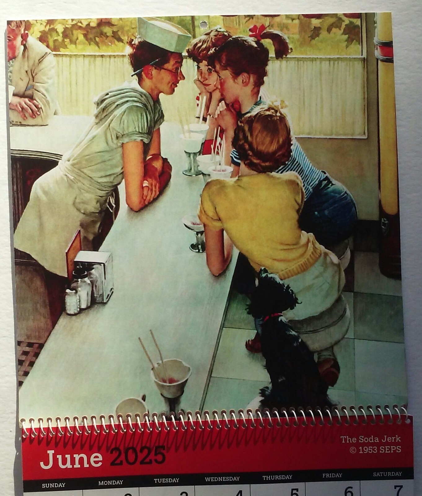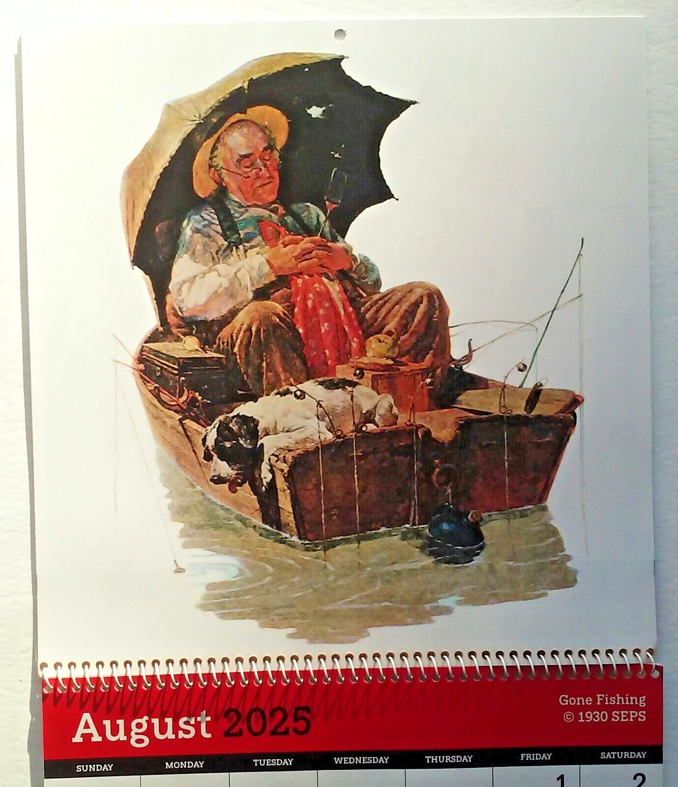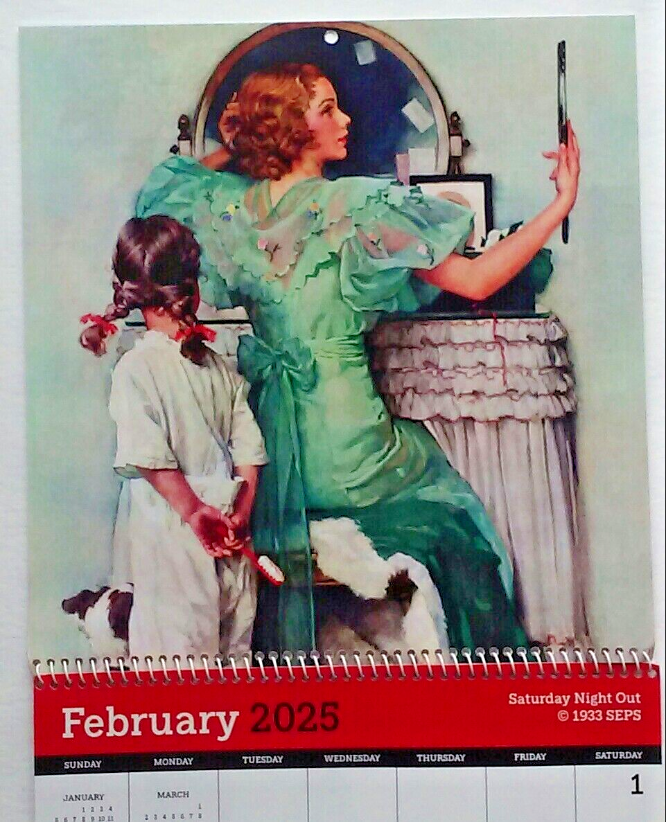 2025 NORMAN ROCKWELL Wall Calendar. This wirebound wall calendar measures 9? wide by 19? high (when open). It features colorful illustrations/paintings by American artist Norman Rockwell featured on Saturday Evening Post magazine covers. NOTE: The monthly calendar pages note all major holidays. See details below: