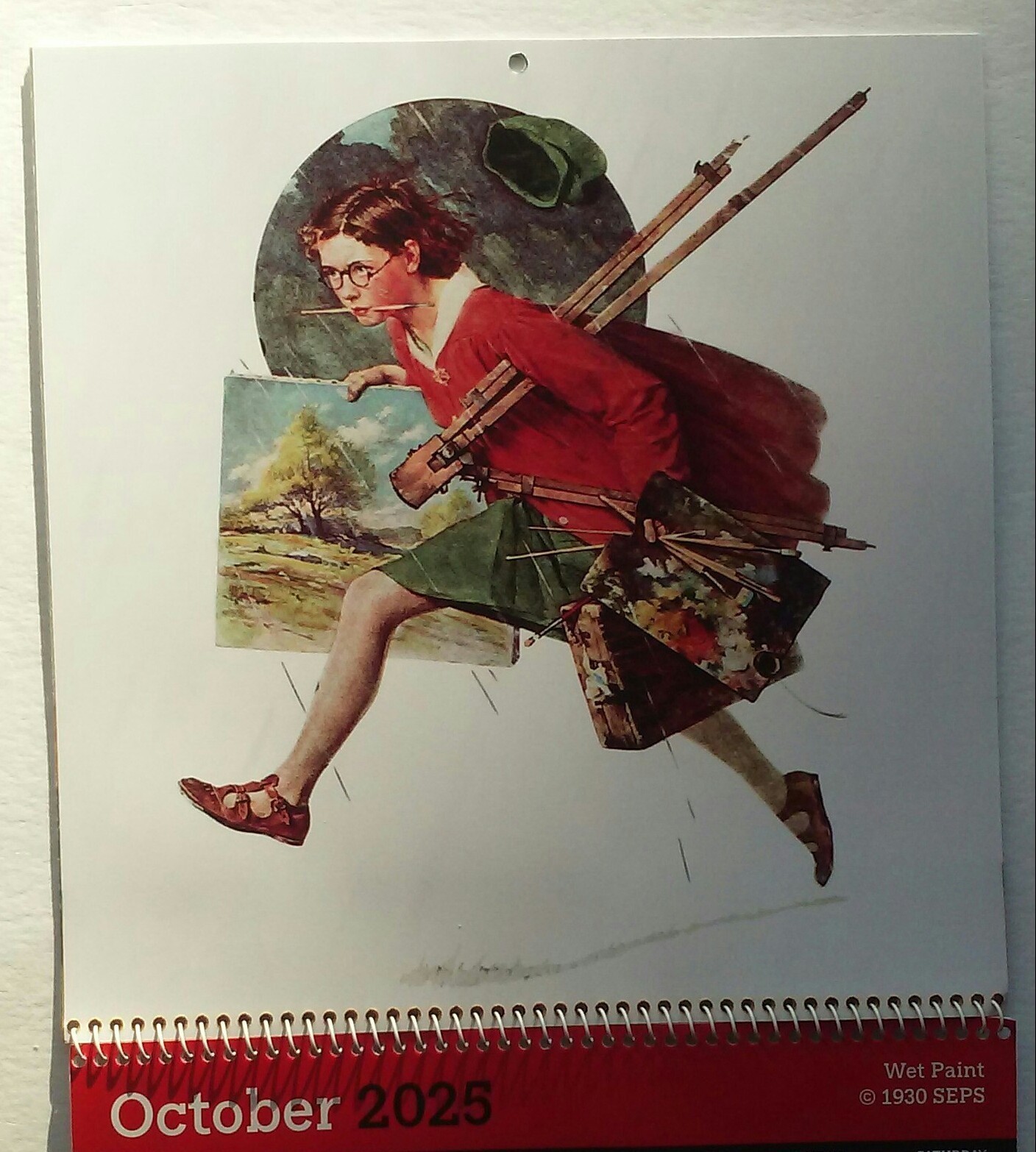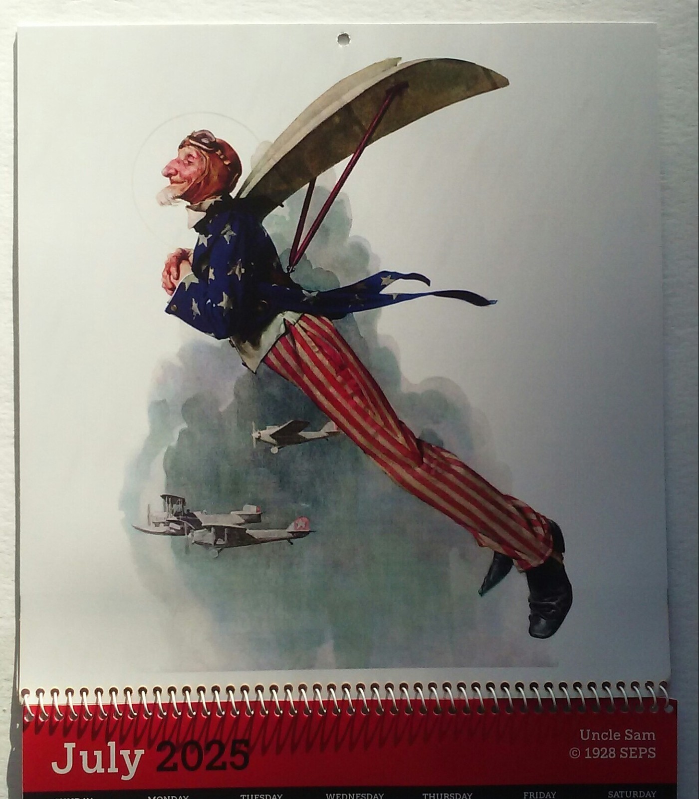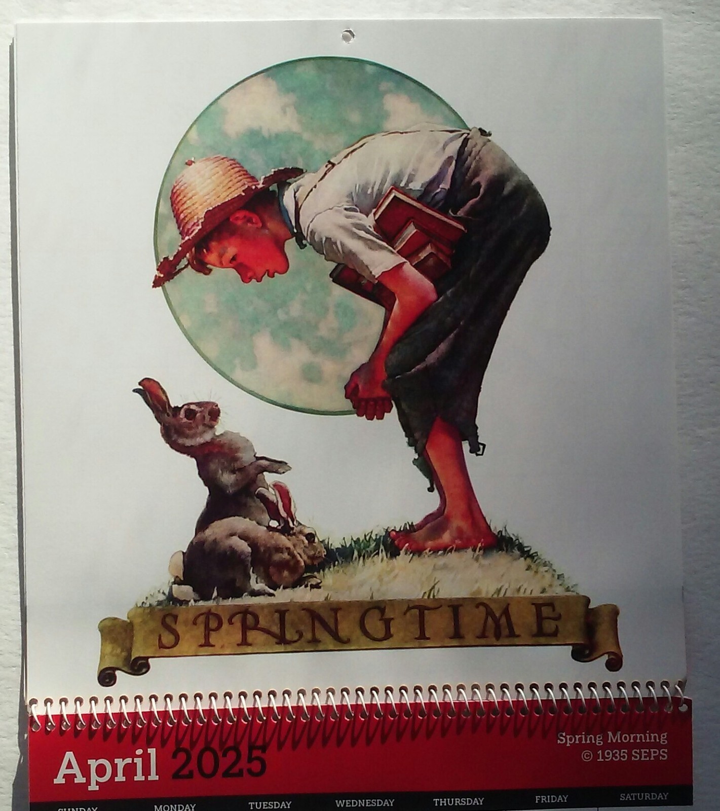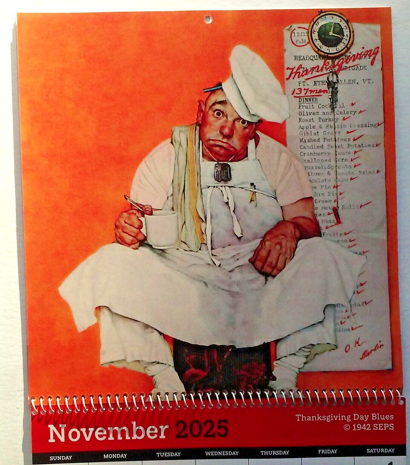 2025 NORMAN ROCKWELL Wall Calendar. This wirebound wall calendar measures 9? wide by 19? high (when open). It features colorful illustrations/paintings by American artist Norman Rockwell featured on Saturday Evening Post magazine covers. NOTE: The monthly calendar pages note all major holidays. See details below: