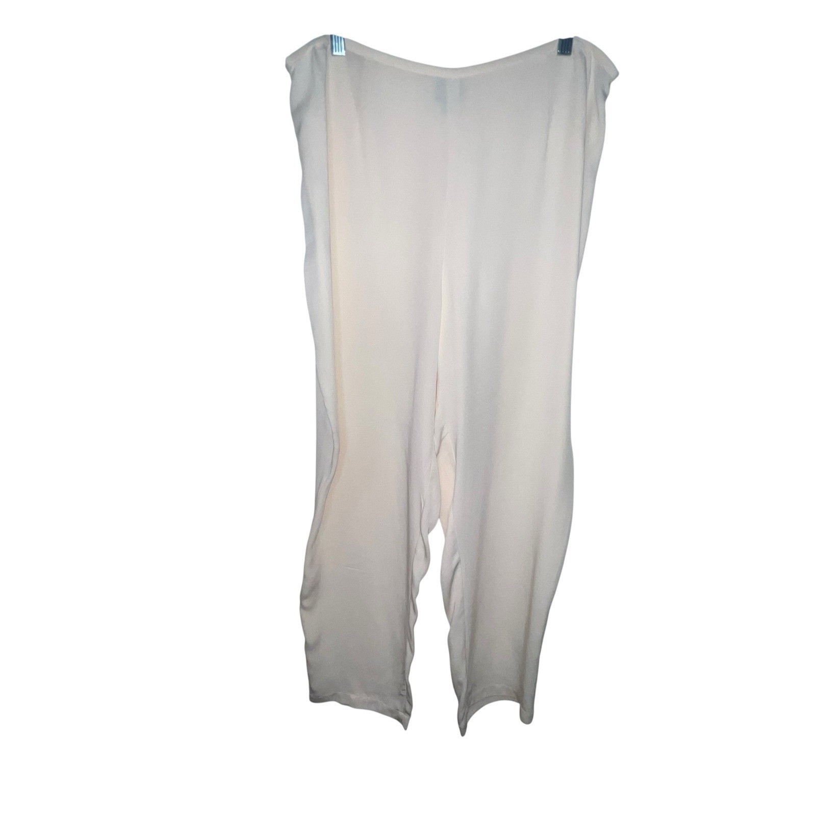 Eileen Fisher Pants Size XL 100% Silk Straight Leg Side Zip High Rise Beige Flaw