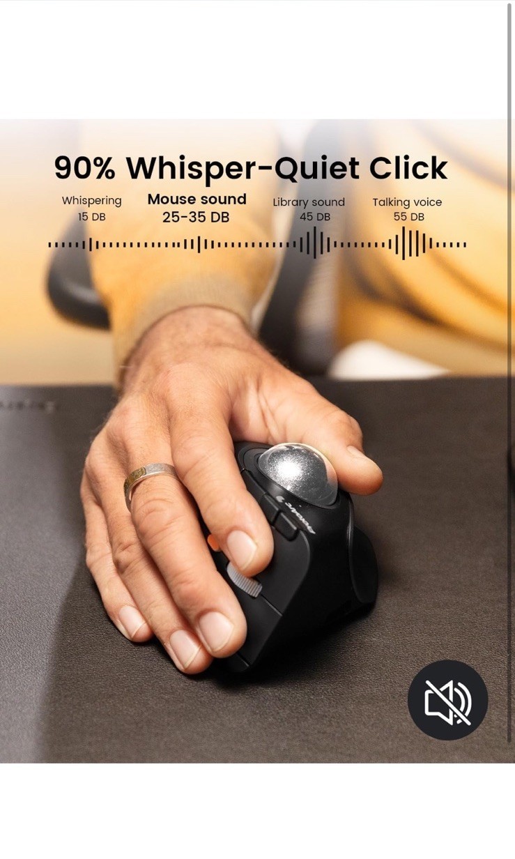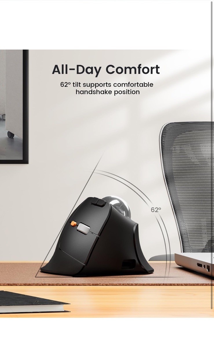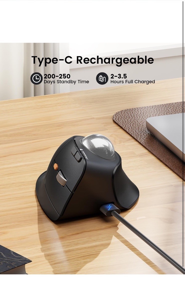 ProtoArc EM05 NL Vertical ERGONOMIC Wireless Silver Trackball Rechargeable Mouse