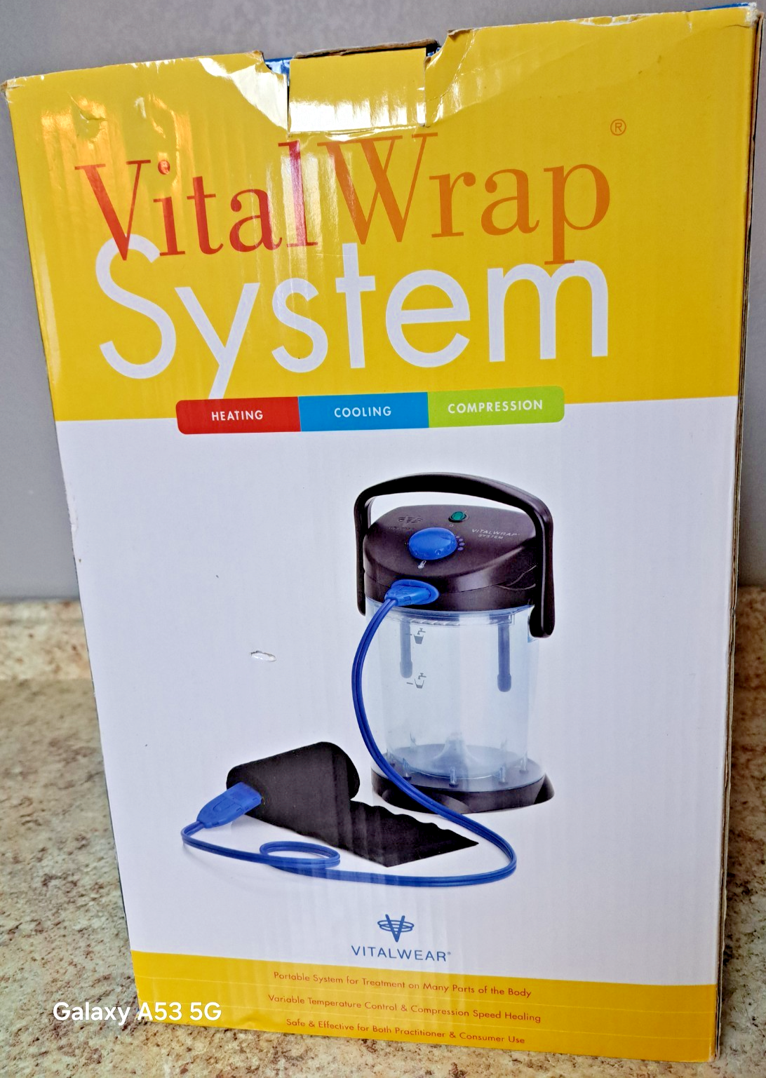 The VitalWrap System Model VIT-00002 by VitalWear is a thermal and compression therapy device designed to aid in recovery from injuries and manage chronic conditions.